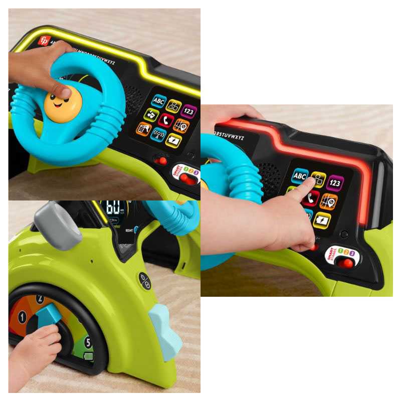 Bebekler ve yürüme çağındaki çocukların her yöne emekleyebilmesi için 360 derece dönebilen, taklit oyunlarına ilham veren araba temalı elektrikli aktivite merkezi ve eğitici oyuncak tüm minikler için geliyor! 3 farklı Yaşa Göre Gelişim seviyesi alfabeyi, 1'den 10'a kadar saymayı, şekilleri ve daha fazlasını öğreten 150'den fazla şarkı, ses ve cümle içerir. Dil seçmek için dünya düğmesini kullanın. İngilizce, Türkçe veya Yunanca dilleri arasında seçim yapabilirsiniz.