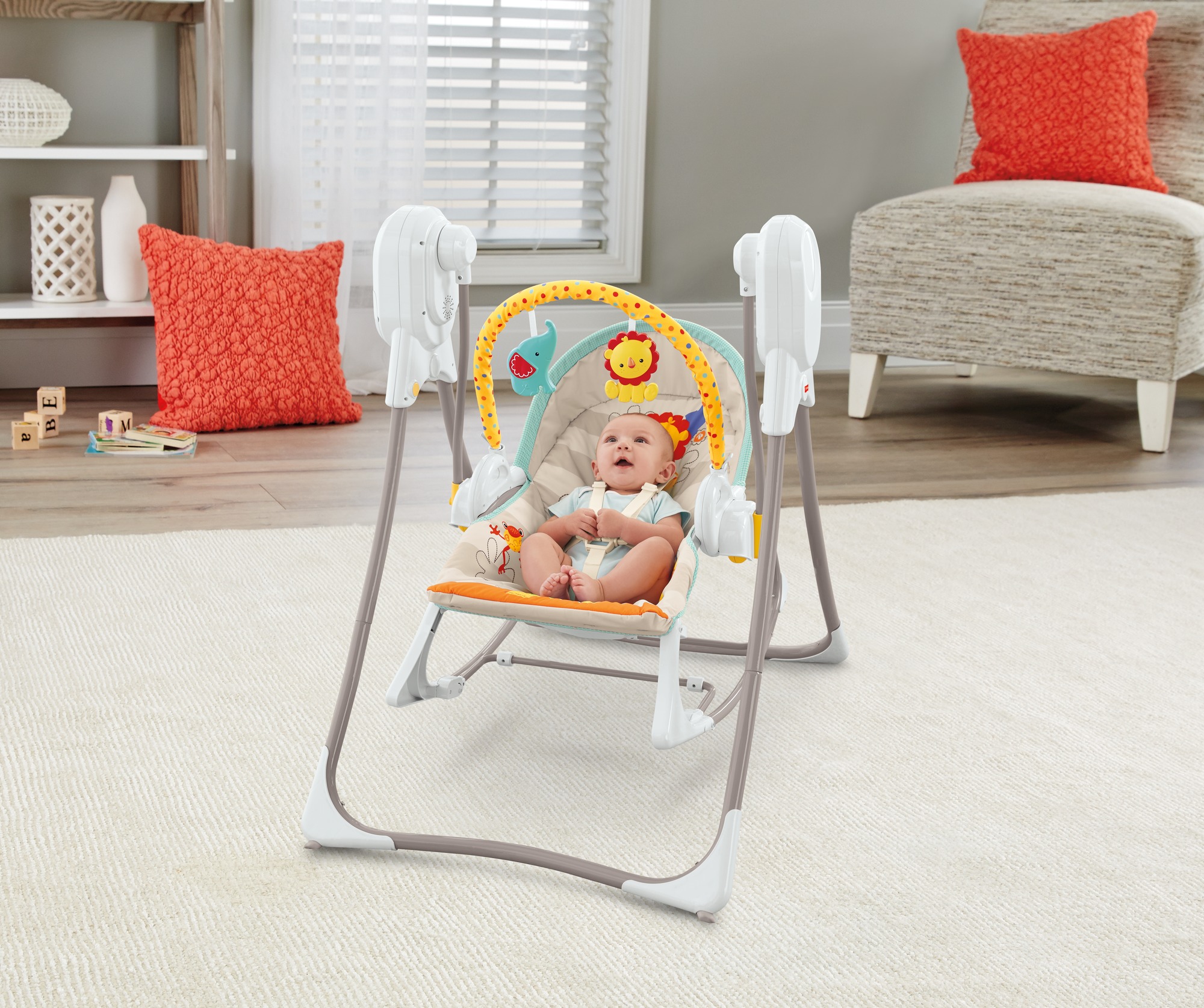 6 kademeli sallanma hızı, rahatlatıcı doğa sesleri içeren 16 melodisi ve çıkarılabilir oyuncak barıyla bebeğiniz için muhteşem bir salıncak!