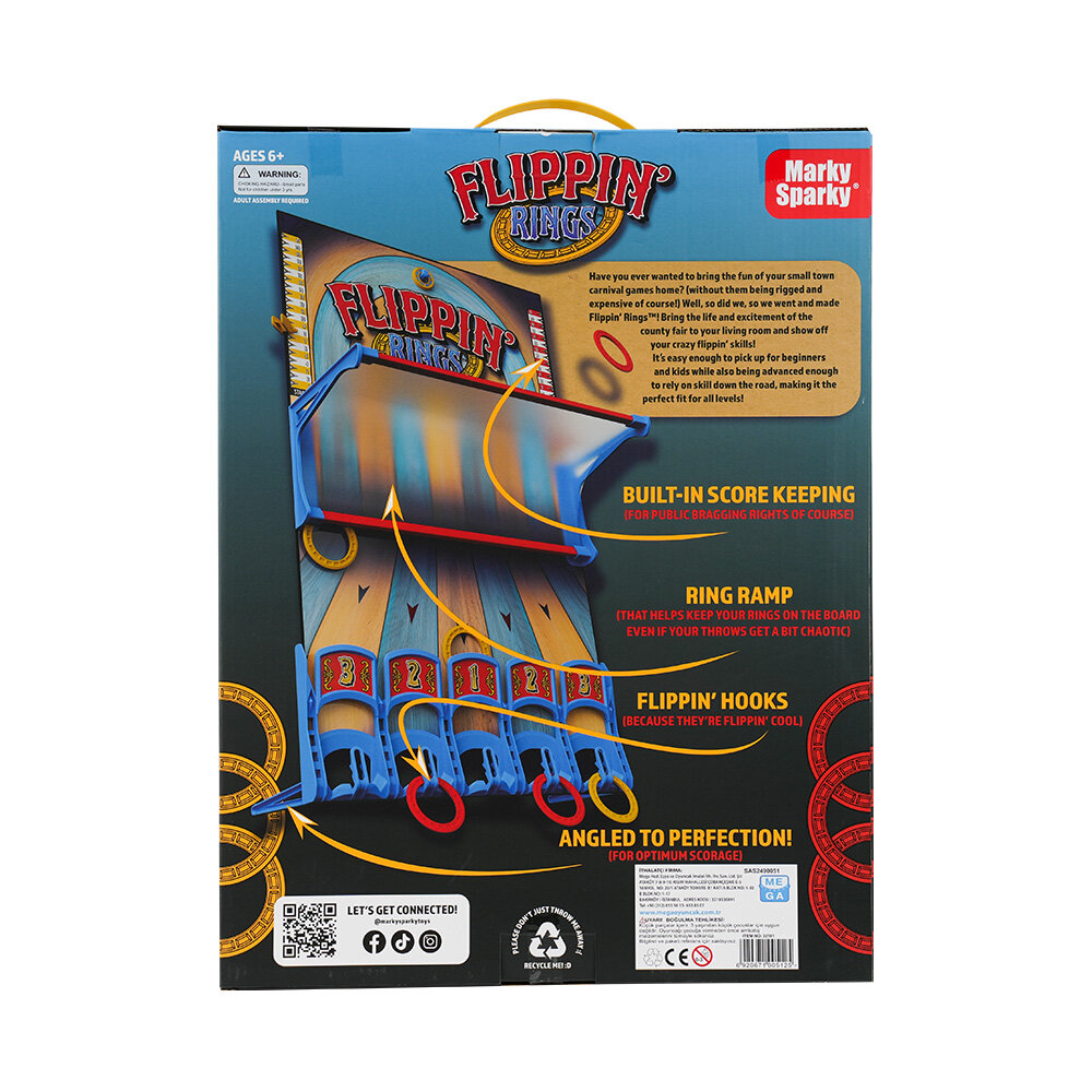 Ebeveynler Flippin' Rings™'in sağladığı eğlence ve öğrenme dengesini takdir edecek , çocuklar ise nişan alma konusunda ustalaşmayı ve yüksek puanlar almayı sevecek. Ve kim bilir? Kendinizi aksiyona katılmak için atlarken bulabilirsiniz. Çünkü bu oyun sadece çocuklar için değil; tüm aile için eğlenceli!