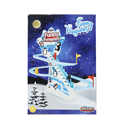Kutu içeriği; 1 Adet Yürüyen Merdivenli Konsol, 1 Adet Konsolün Üstüne Takılan Jolly Penguin Yazılı Pano, 3 Adet Kaydırak Bandı, 3 Adet Sevimli Penguen, 3 Adet Flama