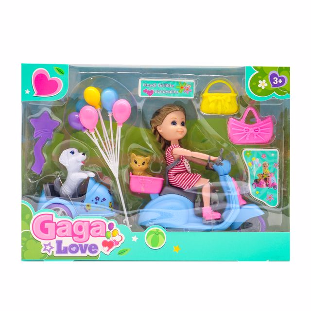 Set içerisinde 1 adet Gaga Love, 1 adet motosiklet, 1 adet
