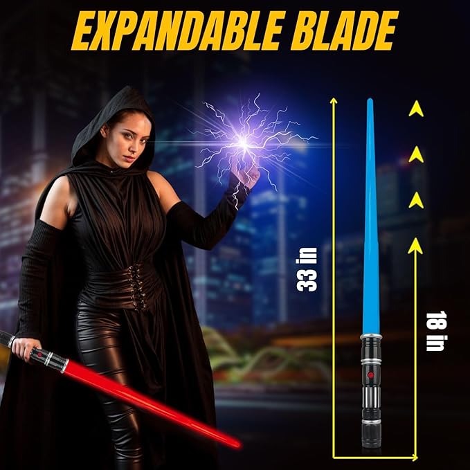 Çocuklar ve yetişkinler, bu oyuncak ışık kılıçları havada savrulurken çıkan dramatik kılıç çarpışma ses efektlerinin ve vızıltıların tadını çıkaracak.