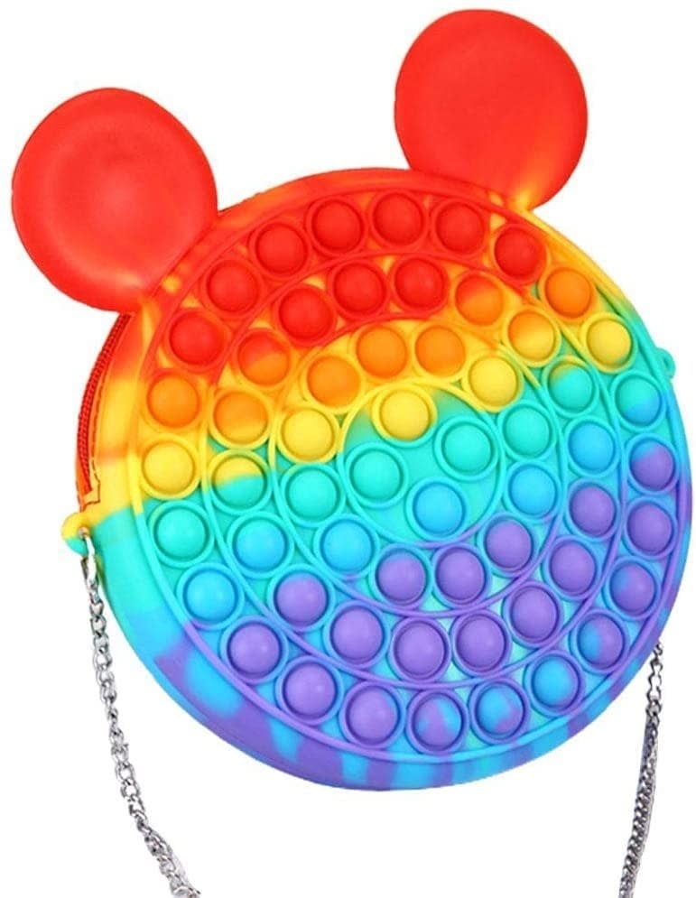 Benzersiz 2'si 1 arada pop it tasarım, aynı zamanda sevimli bir omuz çantası olan bir kıpır kıpır kıpır oyuncaktan oluşur.
