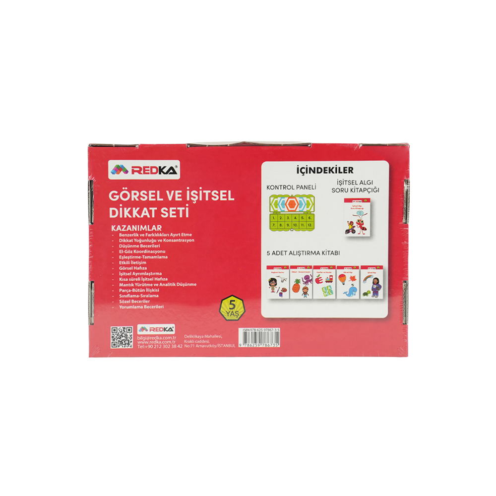 Redka Görsel ve İşitsel Dikkat Seti günümüz çocuklarına hitap edecek şekilde uzmanlar tarafından hazırlanmıştır. Çocuklar hazırlamış olduğumuz bu set ile sıkılmadan eğlenceli ve eğitici vakit geçireceklerdir.