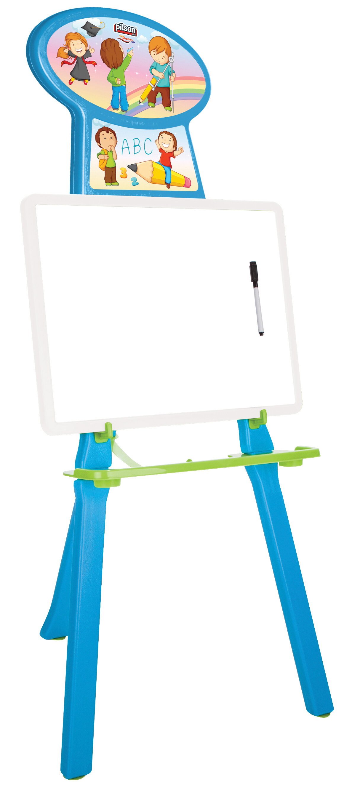 Silinebilir tahta, silgili,kalem, kalemlik mevcuttur.