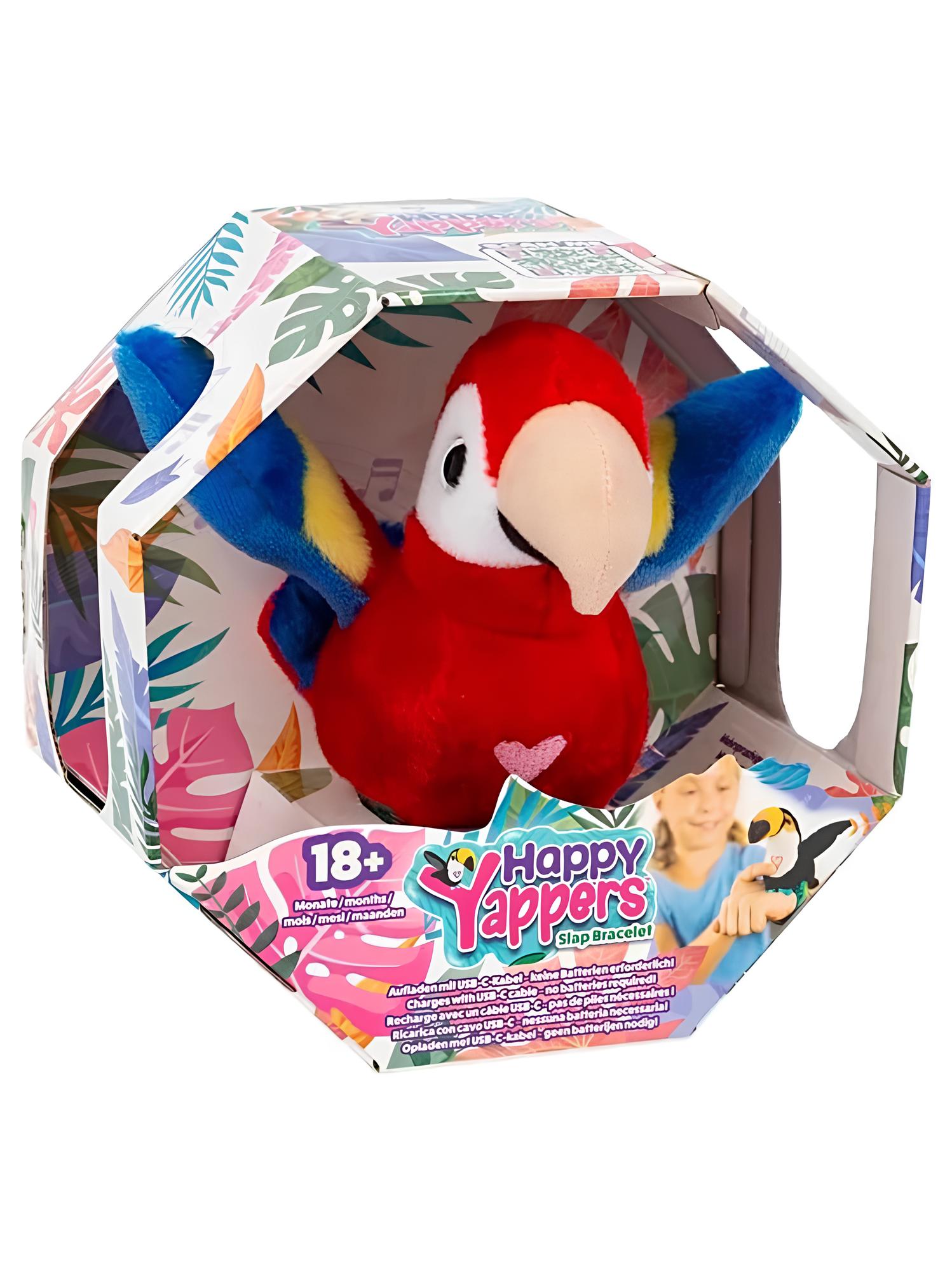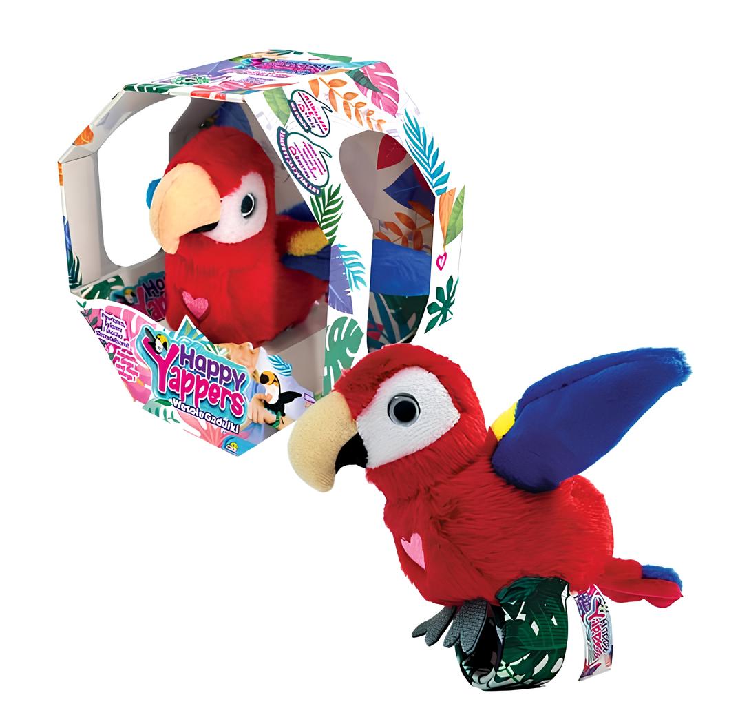 Happy Yappers Slap Bant Kırmızı Papağan, çocukların neşesine neşe katacak interaktif bir peluş oyuncaktır.