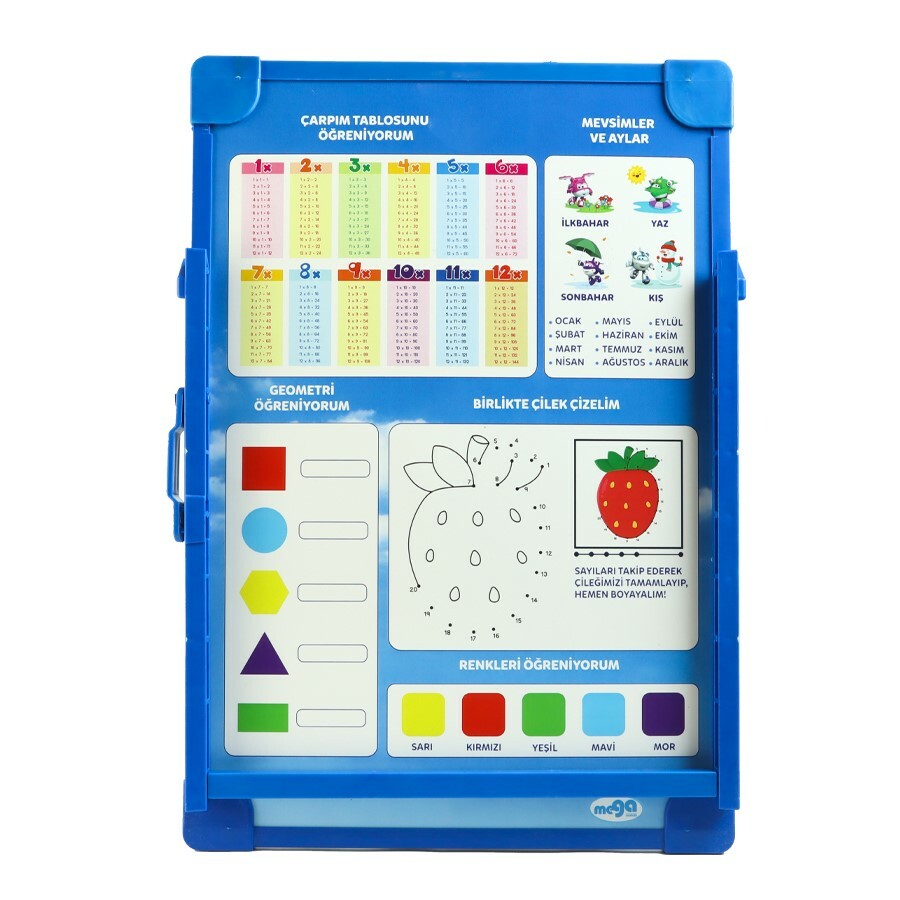 Yazı tahtası kalemi, silgi, manyetik harf seti hediyelidir.