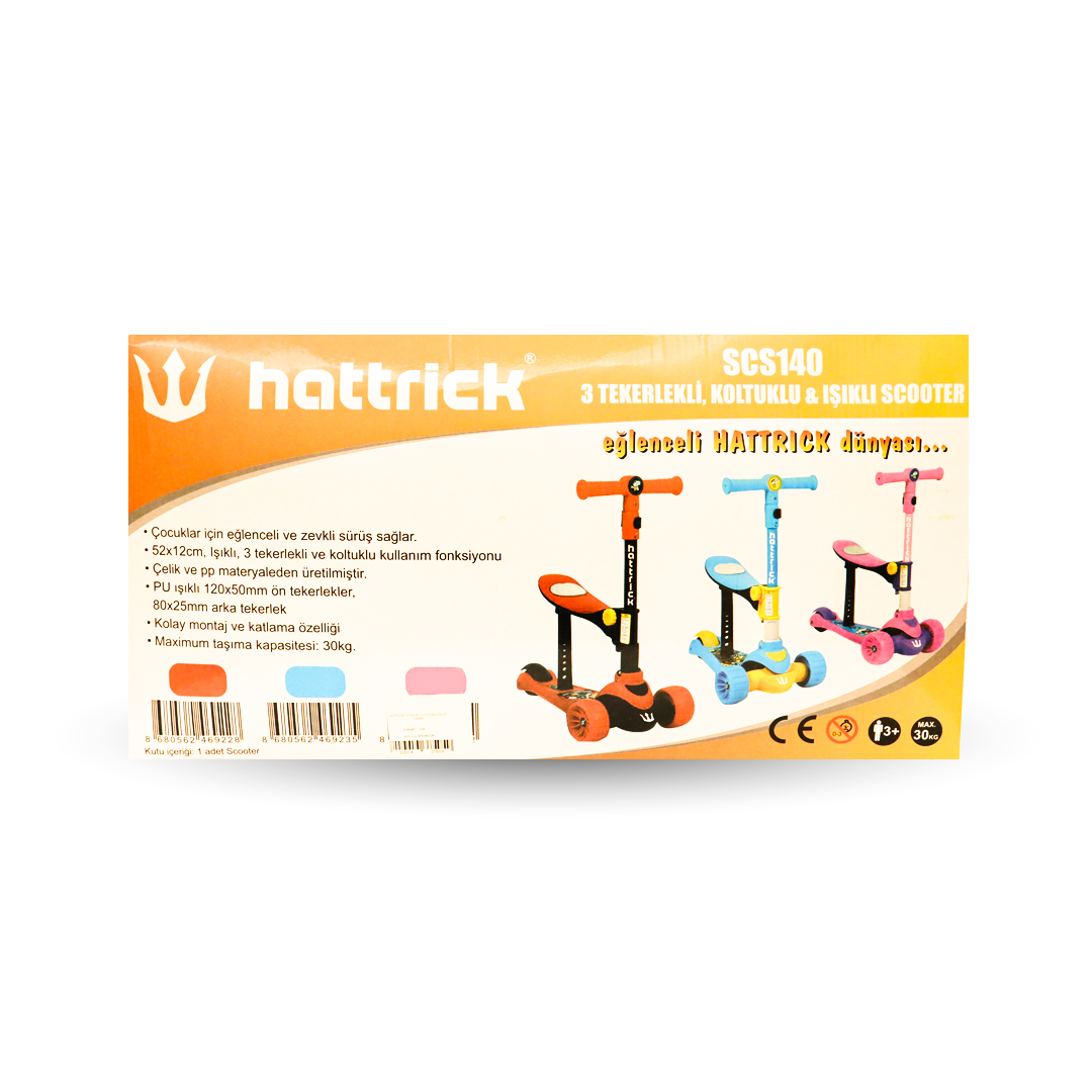 Hattrick Koltuklu Işıklı 3 Tekerlekli Scooter ile minikleri eğlenceli bir sürüş deneyimi bekliyor!