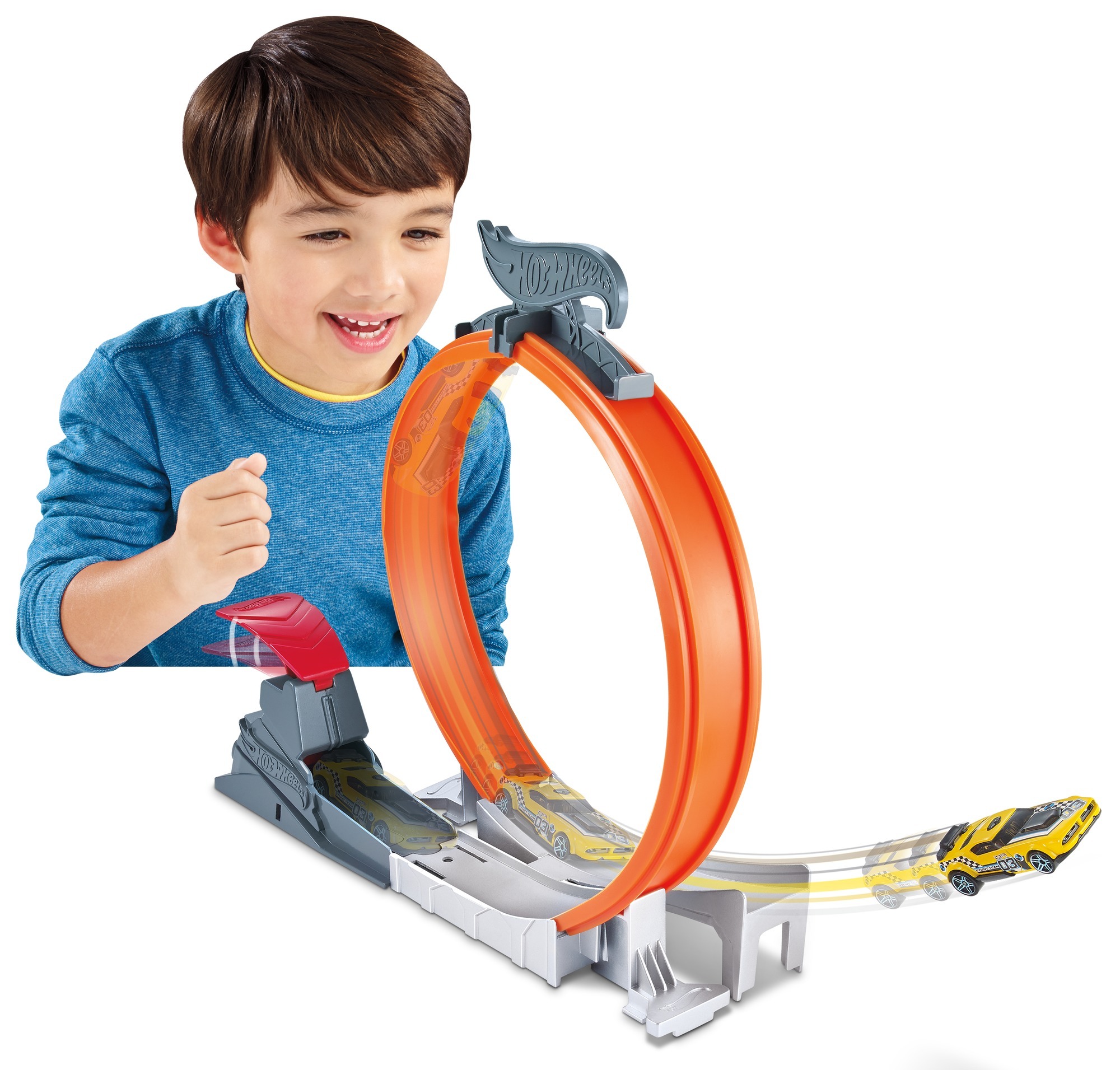 Her set, efsane bir pist oluşturmak için diğer Hot Wheels yarış setlerine (ayrı olarak satılır) bağlanabiliyor.