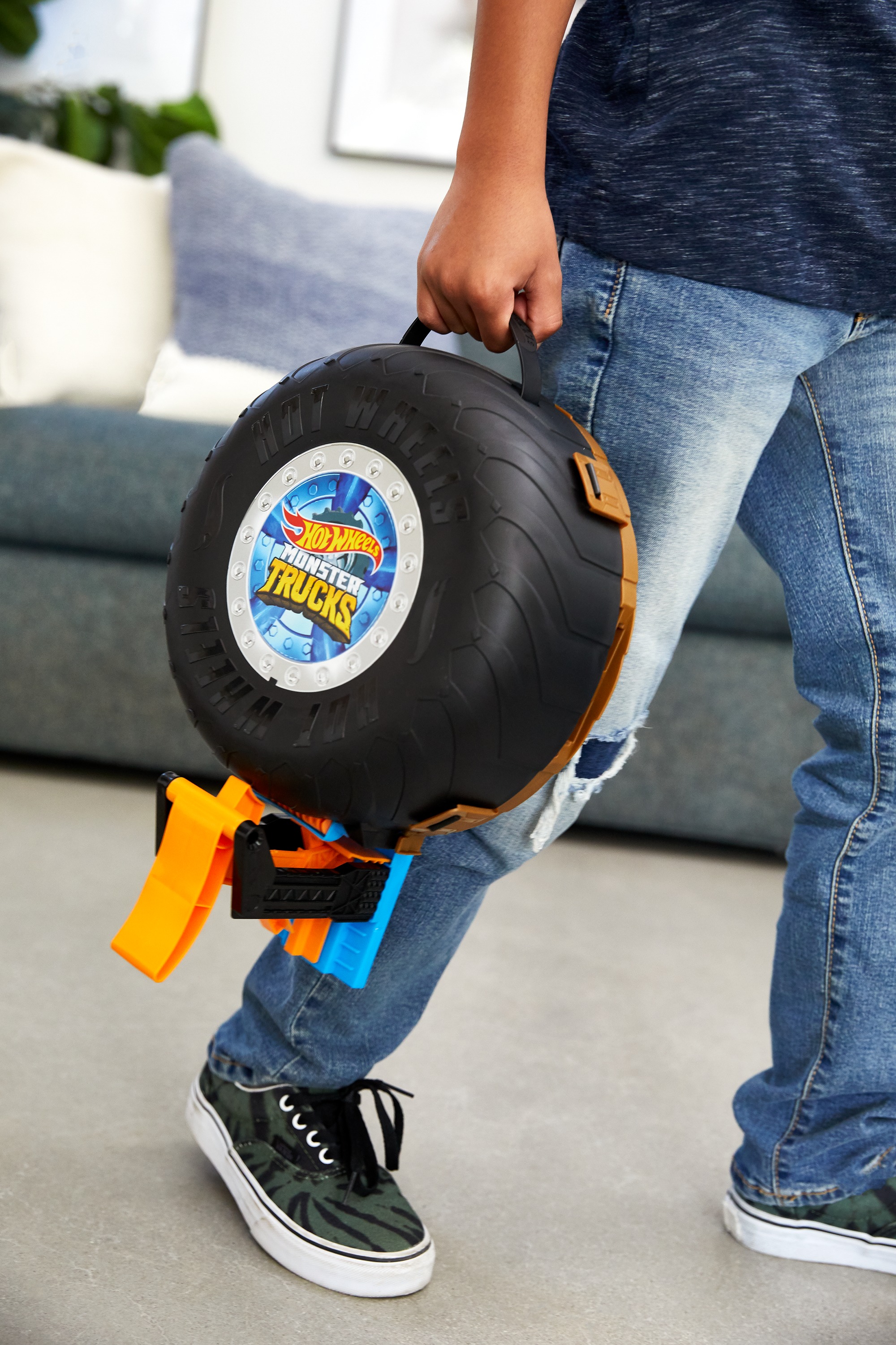 İkonik büyük boy Monster Truck lastiği, Tiger Shark canavar kamyonunu ve Hot Wheels 1:64 ölçekli bir aracı içerir.