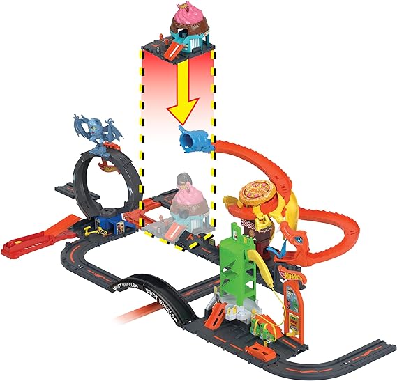 Oyun setleri, Hot Wheels™ Şehri düşmanlarıyla mücadele temasına dayanır ve her an saldırmaya hazır bir yaratığın pusuya yatmış beklediğine dair detaylar içerir.