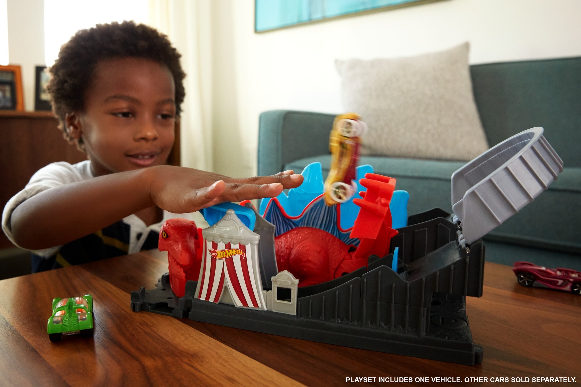 Heyecan verici her bir set çocukların kahraman rolünü oynayabileceği ve Hot Wheels arabalarını kullanarak mücadele edip akrobatik hareketlerle günü
