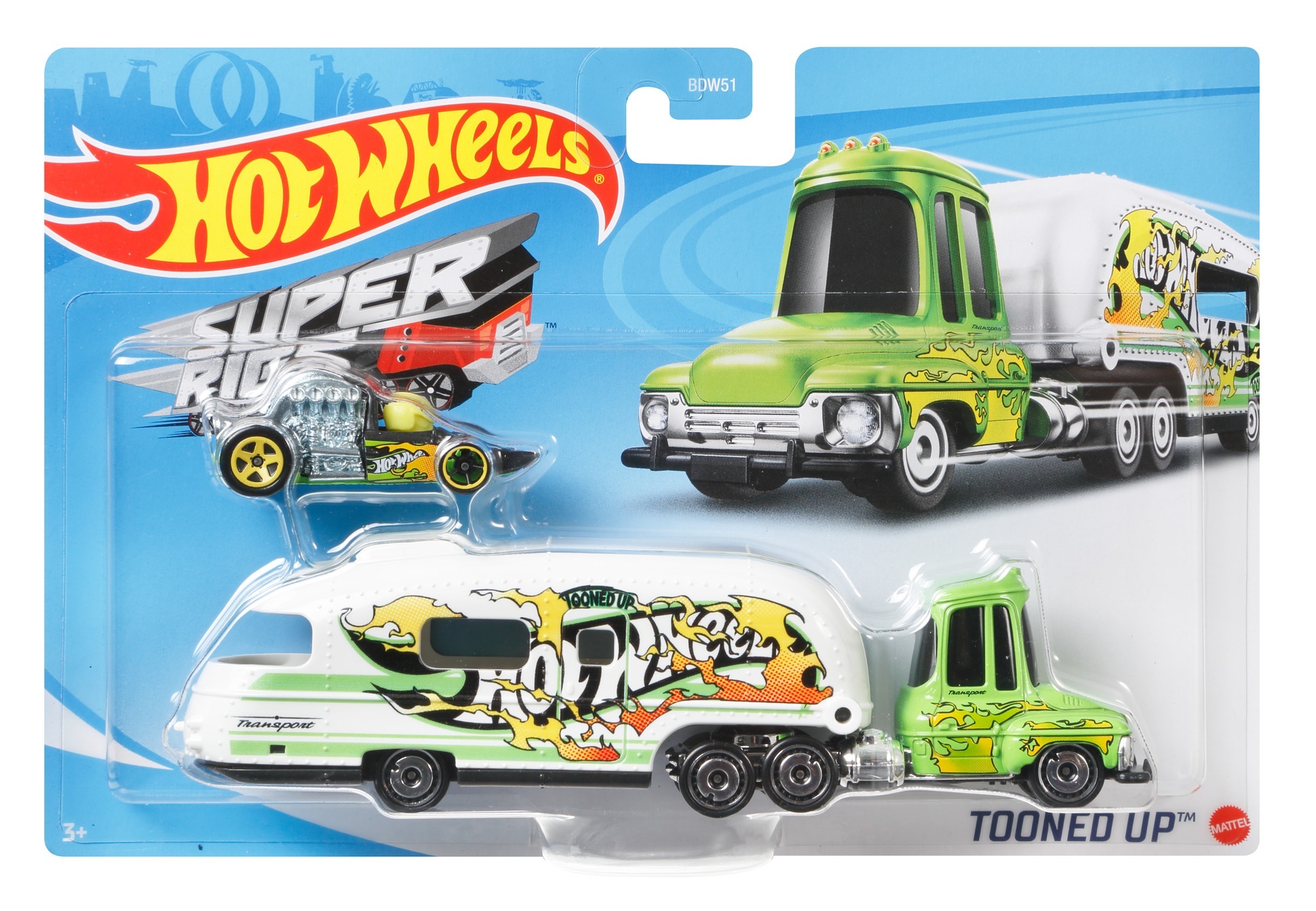 Araba setlerine sahip bu havalı Hot Wheels taşıyıcı tırlar, araba sürmeye, yükleme ve taşımaya veya pistte yarışmaya ilham verici bir tarz getiriyorlar.