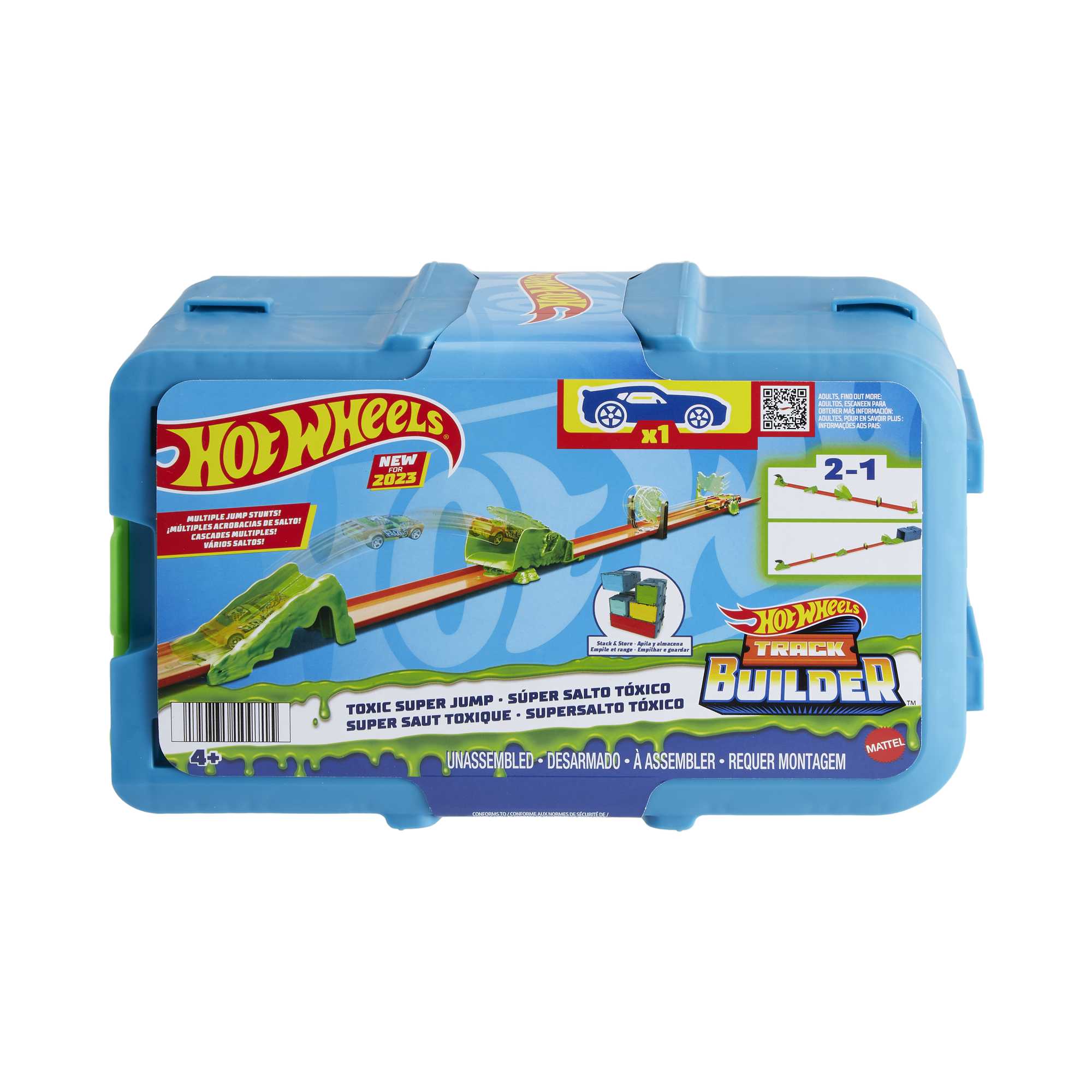 Hot Wheels Track Builder Toxic Super Jump parkur paketi ile dinamik bir pist yapısı oluşturun.