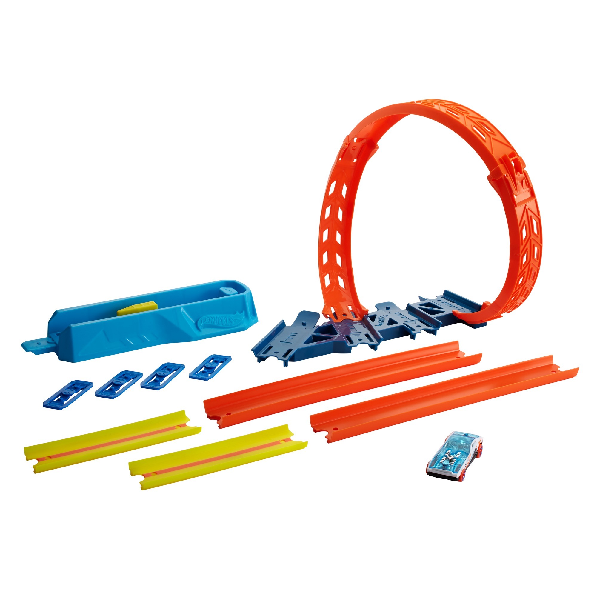 Hot Wheels Track Builder Unlimited Ayarlanabilir Çember Paketi, daha zorlu ve daha heyecanlı oyunlar için ayarlanabilen üçü bir arada bir çembere sahiptir.