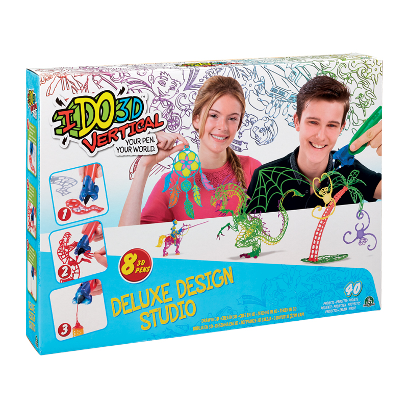 IDO3D Tasarım Stüdyosu, her bir kutuda tam 8 adet Tasarım kalemi, Tasarım Kılavuzu, Tasarım Kağıdı ve yardımcı malzemelerle geliyor ve 40 farklı model tasarlamaya olanak sağlıyor.