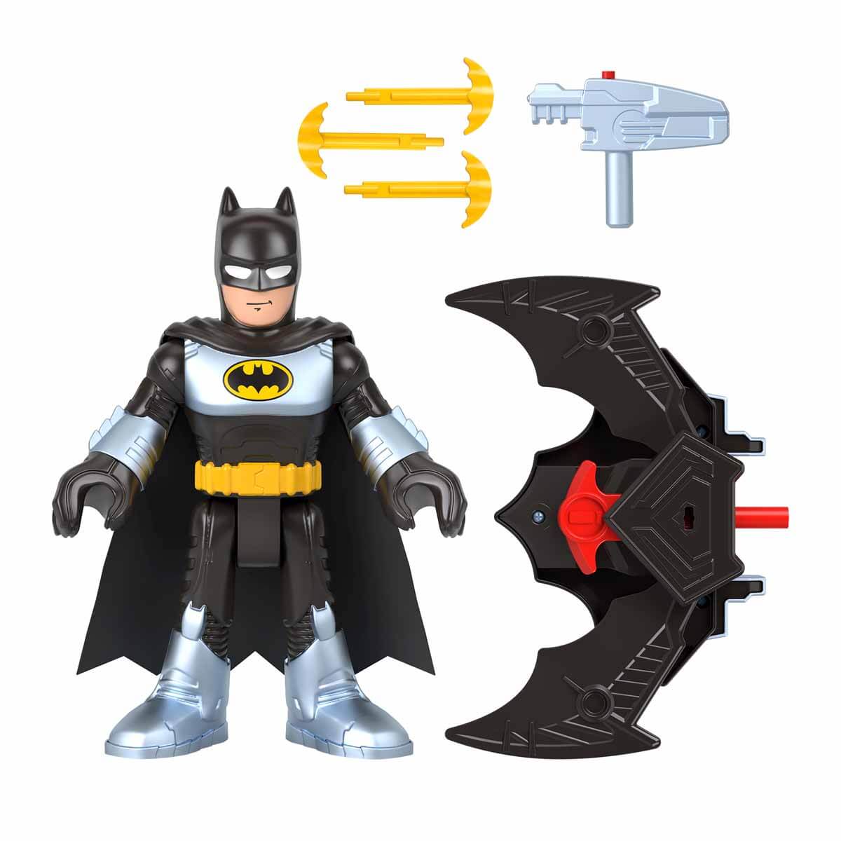 Dönüşen Batglider'ı bulunan, 25 cm'lik eklemleri bükülebilen Batman figürü ile suç ile mücadele oyunları yepyeni bir boyut kazanıyor. Batglider'ı uçuş moduna geçirmek ve kanatlarını ortaya çıkarmak için güç düğmesine basın. Figüre takılabilen disk fırlatıcısı ve 3 disk ile birlikte gelir. Daha gerçekçi bir aksiyon için figürün kollarını ve bacaklarını hareket ettirin. Batman’in tek başına Gotham City’i nasıl koruduğunu görün!