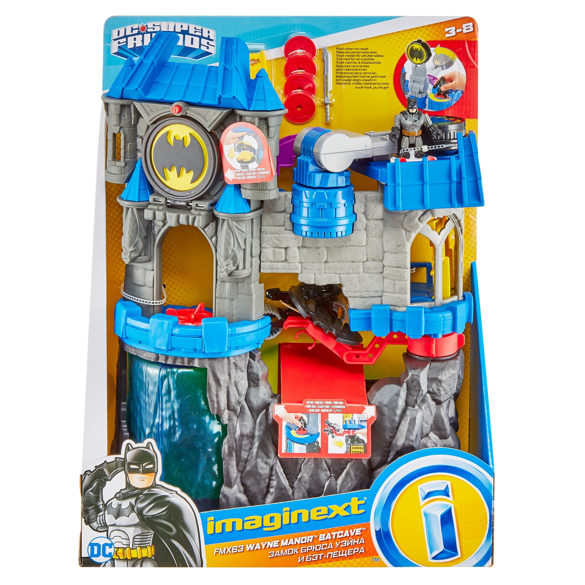 Imaginext DC Super Friends™ Batcave sayesinde Genç Süper Kahramanlar, macerayı Wayne Manor™'dan gizli sığınağa (ve sonra yeniden Wayne Maynor'a) taşıyarak Batman™ ile kendilerine özgü heyecan verici Gotham City™ maceraları oluşturabilirler.