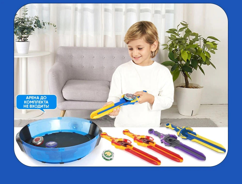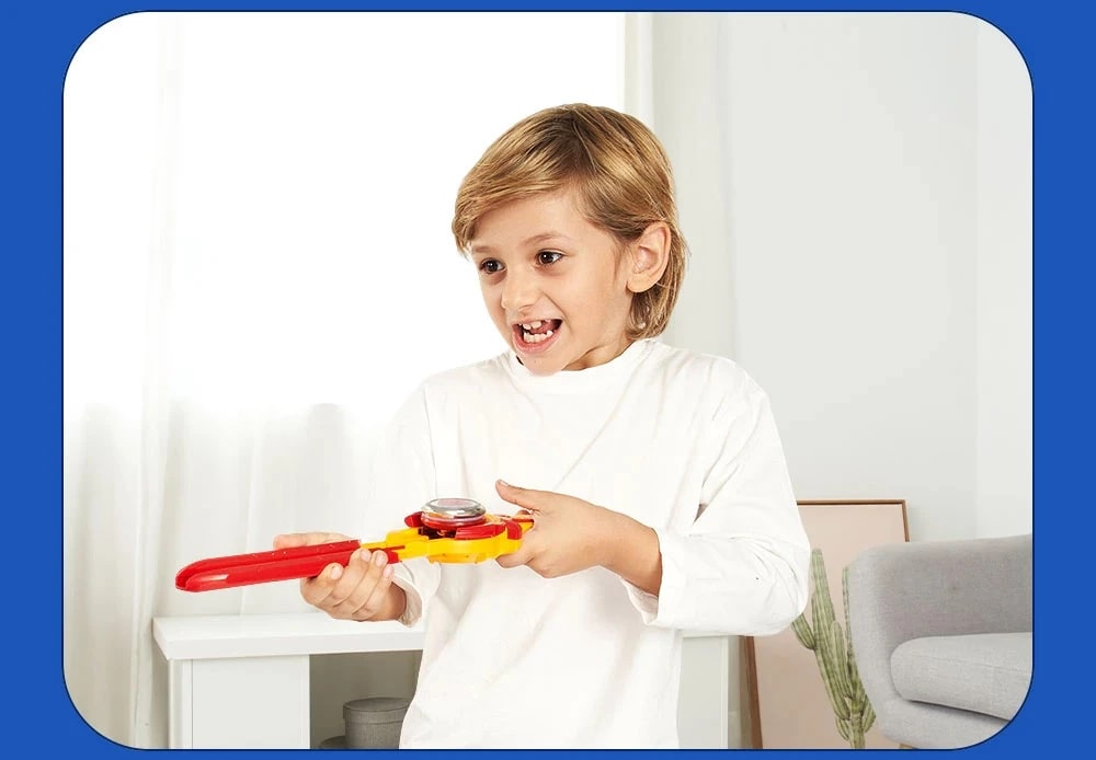 Nado’yu fırlatma yuvasına yerleştir, kolu ileri geri çekerek dönüş enerjisini yükle! Topaç hazır olduğunda tetiğe bas, dönen enerjiyi serbest bırak ve arkadaşlarınla eğlenceli bir karşılaşma başlat.