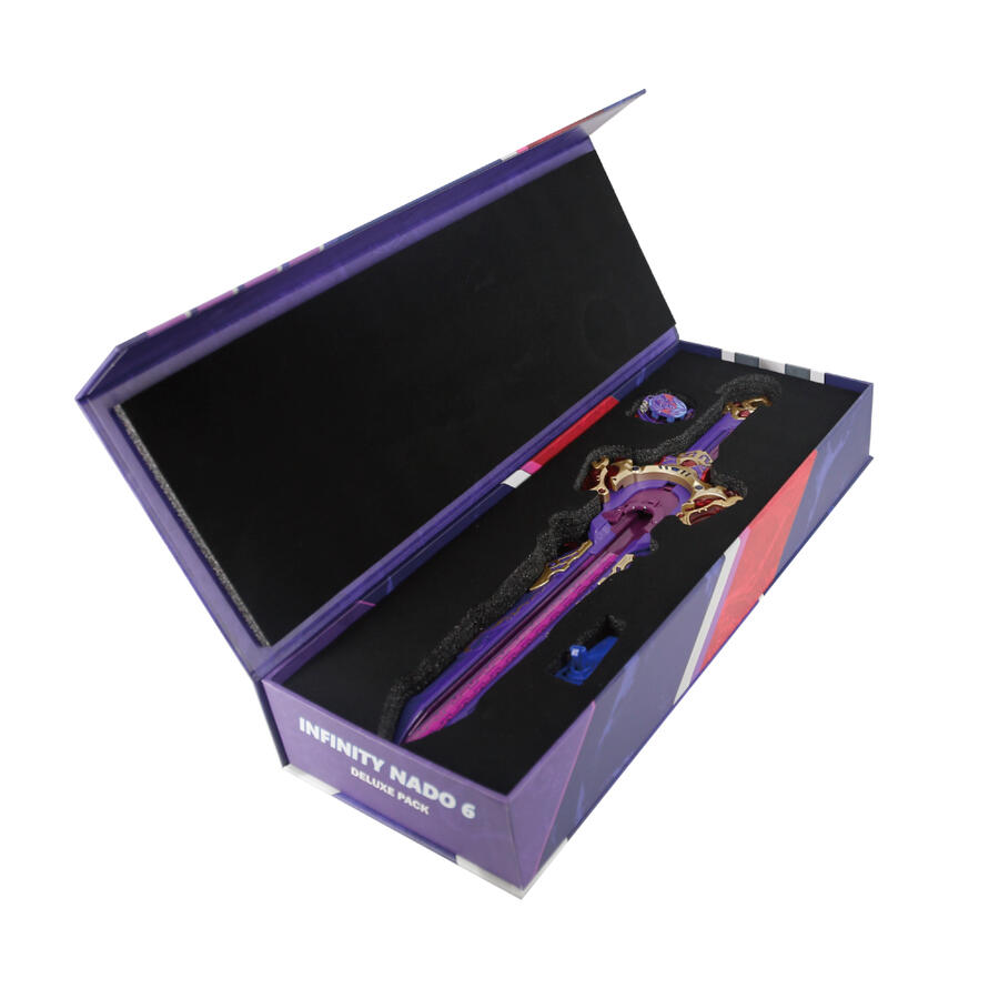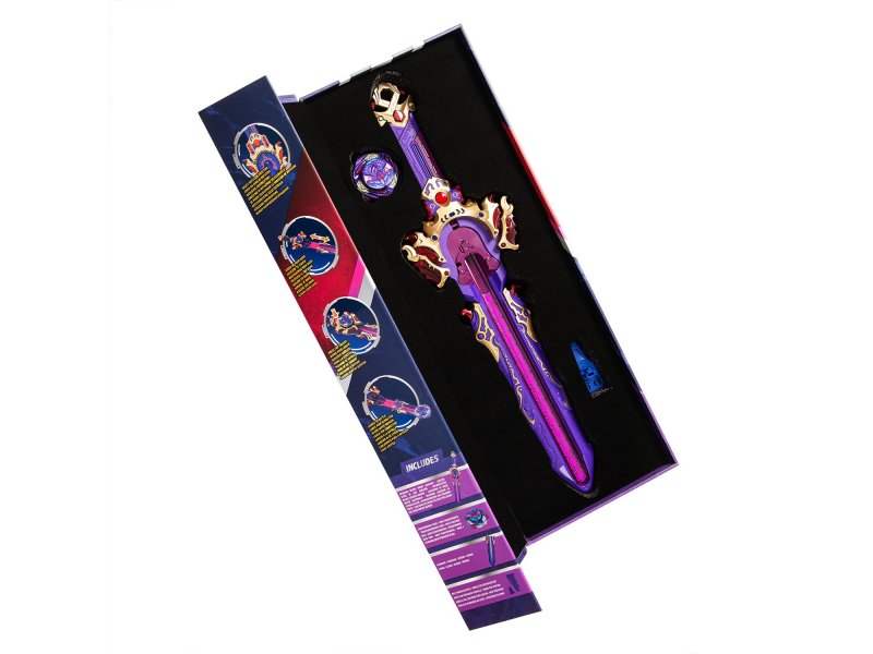 Tam 50 cm uzunluğundaki fırlatıcı, LED ışık efektleriyle oyuna heyecan katıyor. Saptaki düğmeye basarak ışıkları etkinleştir, kolu kullanarak dönüş yönünü seç ve kılıcını ister kınındayken ister dışarıda tutarak fırlat. Üstelik set içeriğindeki özel tutucu sayesinde kılıcı kemerine asabilir, oyuna her an hazır olabilirsin.