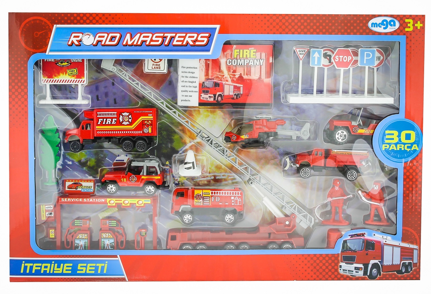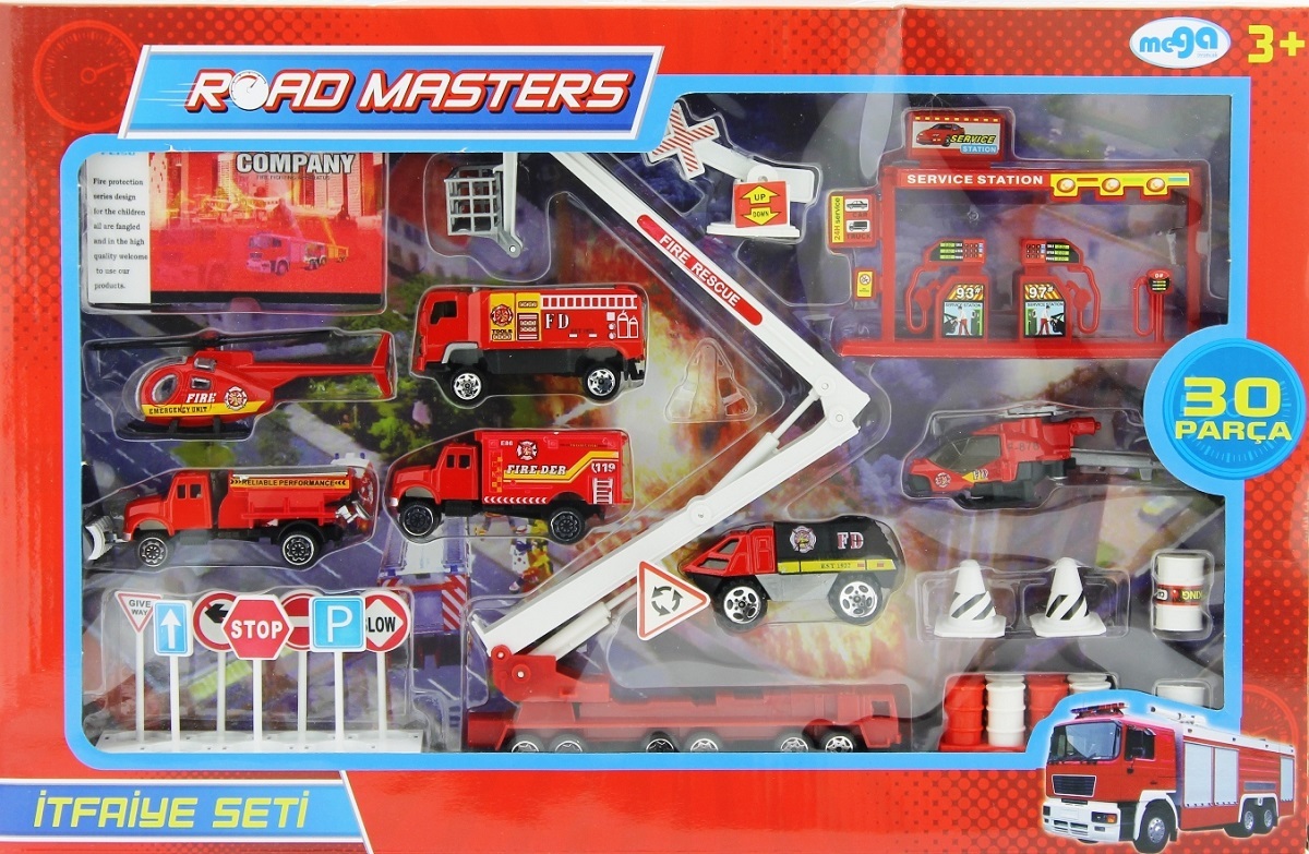 Her set içerisinde yaklaşık 12 cm boyunda 1 büyük araç ,6 cm boyunda 6 araç, 22 aksesuar ve 1 polis kartı mevcuttur.