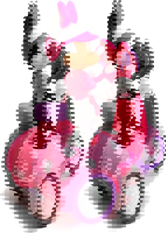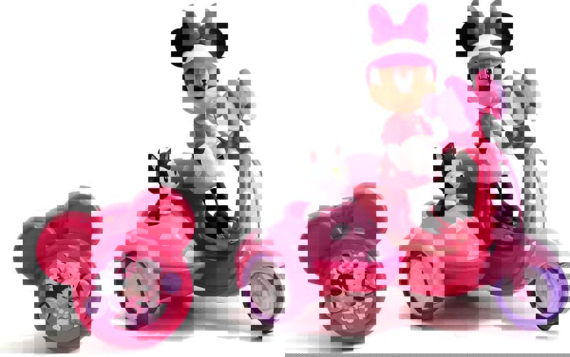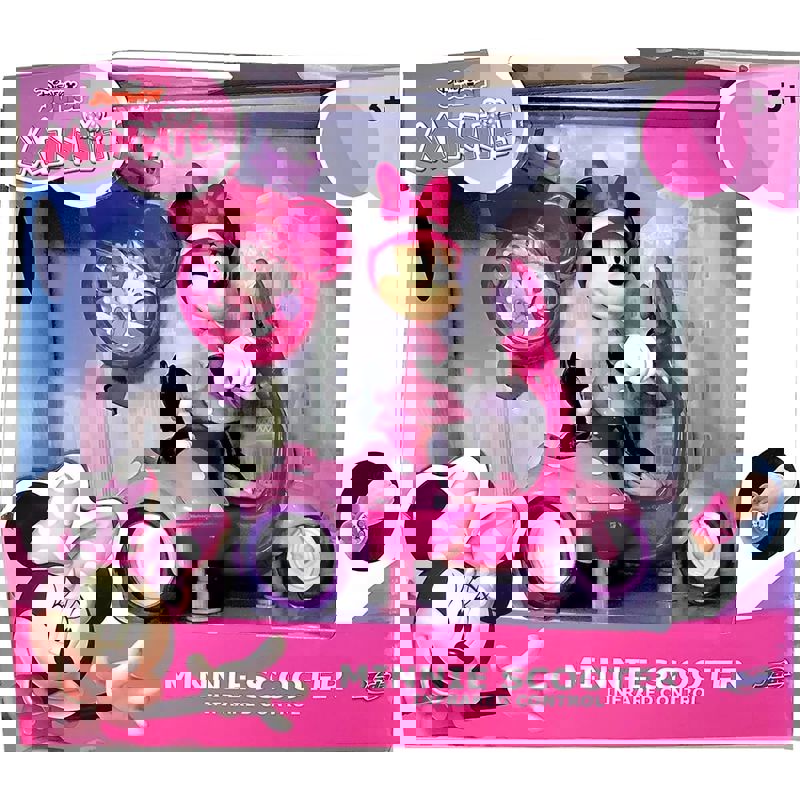 Gösterişli pembe noktalı RC scooter, Minnie Mouse ile sürücü koltuğunda en tanınabilir karakterlerden birine sahip.
