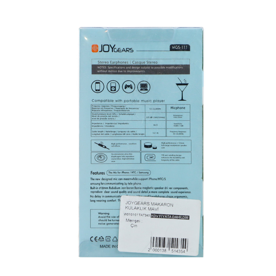 Estetik ve işlevselliği bir araya getiren Joygears Renkli Kulaklık Makaron Mgs11, telefonla konuşmayı ve müzik dinlemeyi eğlenceli hale getiriyor.
