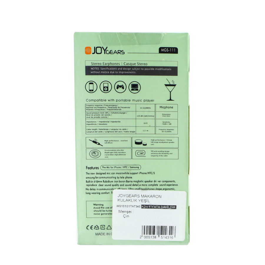 Estetik ve işlevselliği bir araya getiren Joygears Renkli Kulaklık Makaron Mgs11, telefonla konuşmayı ve müzik dinlemeyi eğlenceli hale getiriyor.