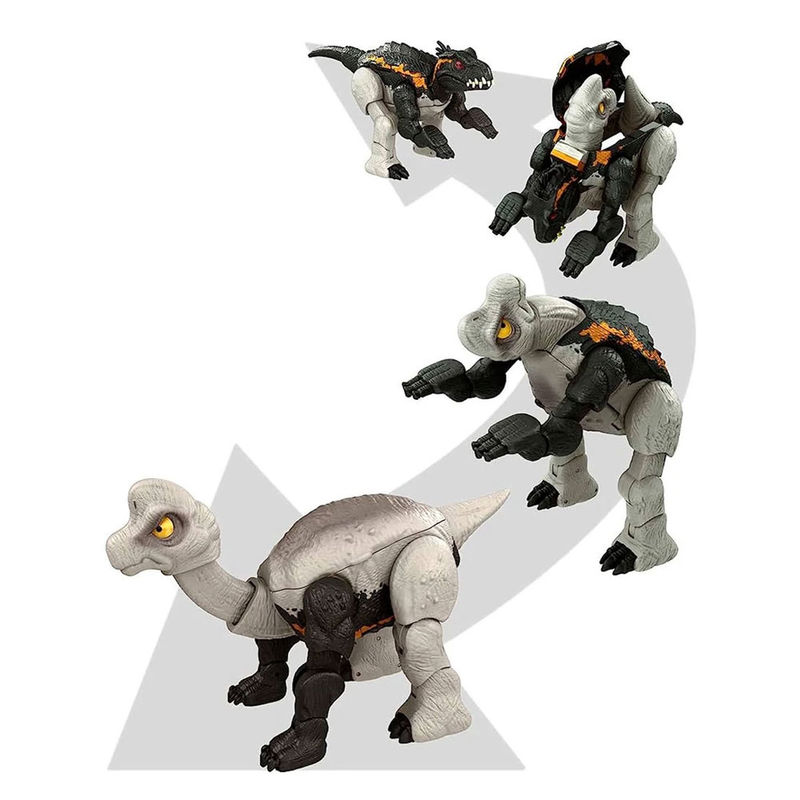 Dönüşen eğlence! Oyuncak dönüşümünü yeni bir seviyeye taşıyan her figür, türe bağlı olarak uzun boyun ve kuyruklardan boynuzlara, pençelere ve uzuvlara kadar bu büyük dinozorların ayırt edici özelliklerini oluşturmak için dışarı çıkıyor.