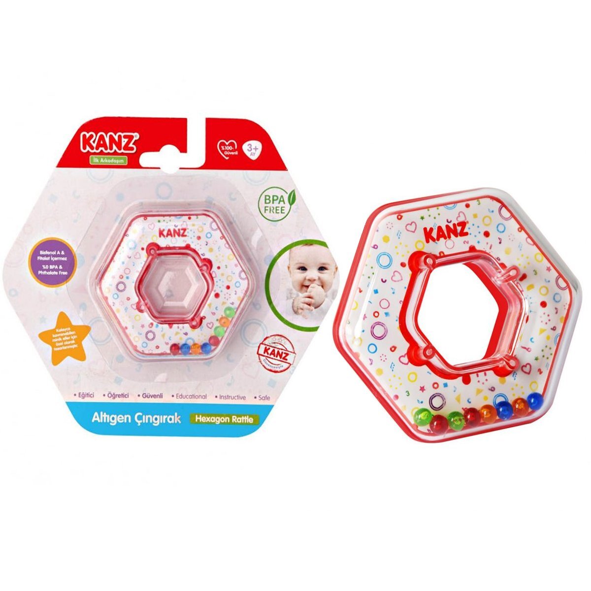 Minik ellerin kolayca kavraması için özel olarak tasarlanan Kanz Altıgen oyuncak, sağlığa uygun malzemelerden üretilmiştir.