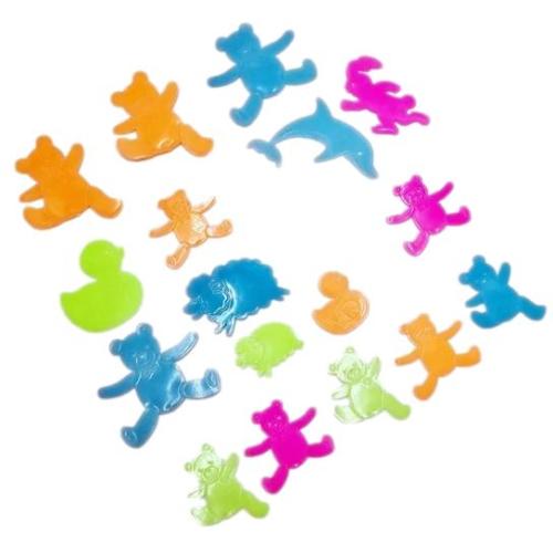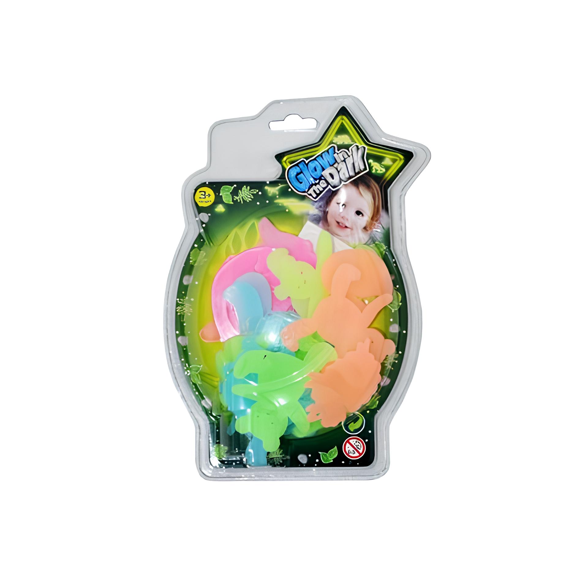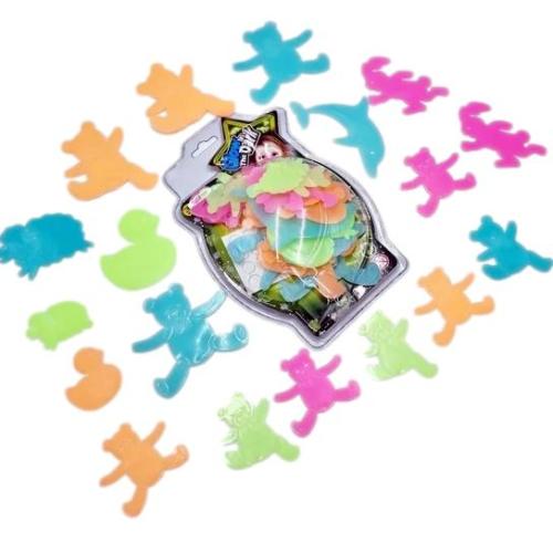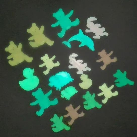 Güneşten veya yapay ışıktan yayılan ışığı emerek karanlıkta parlayan 18 floresan çıkartmadan oluşan bir set.