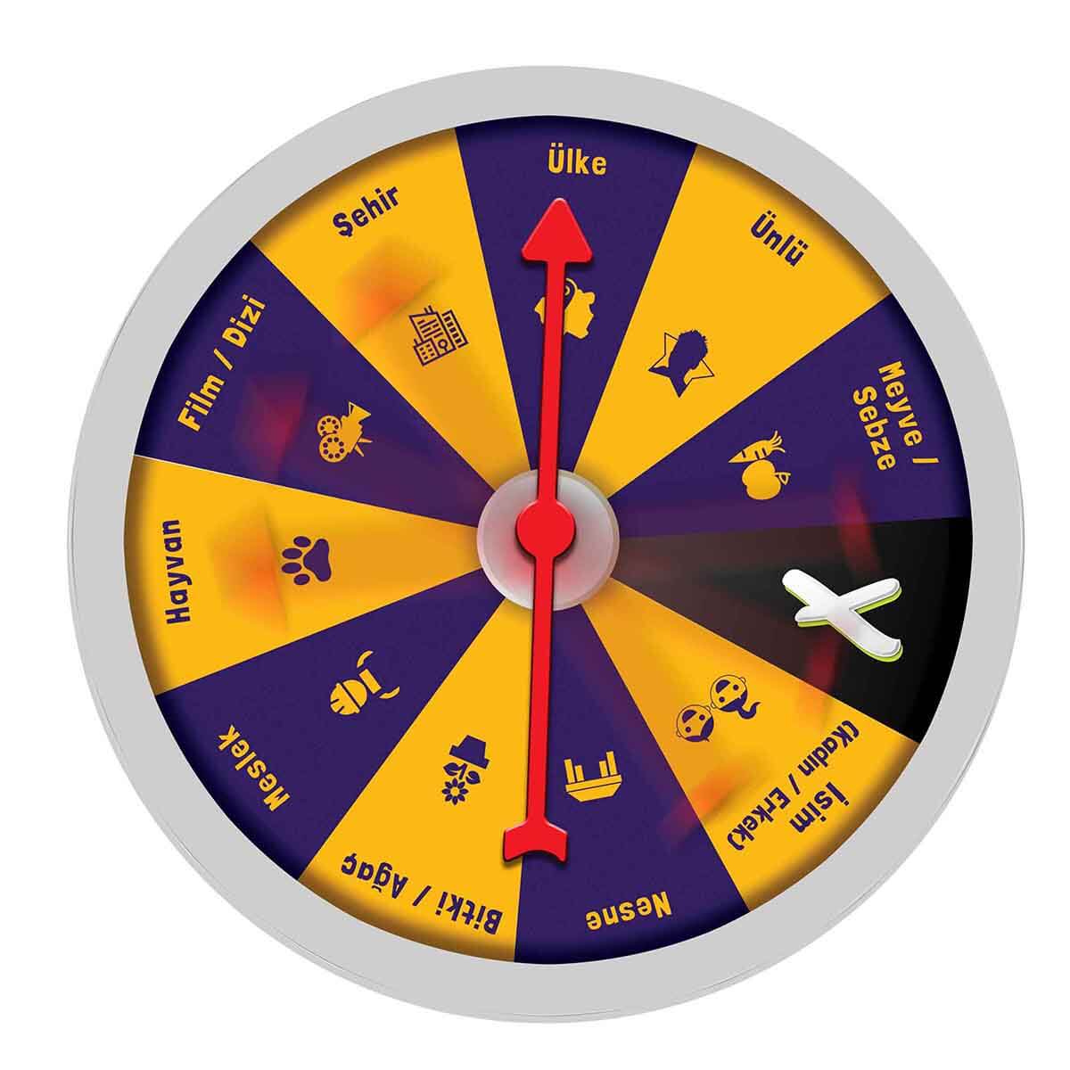İçindekiler :1 Oyun Çarkı, 1 Çark Oku, 1 Elektronik Zamanlayıcı, 4 Cevap Kartı, 4 Kalem, 55 Harf Kartı, 40 Oyun Pulu ,Kullanım Kılavuzu