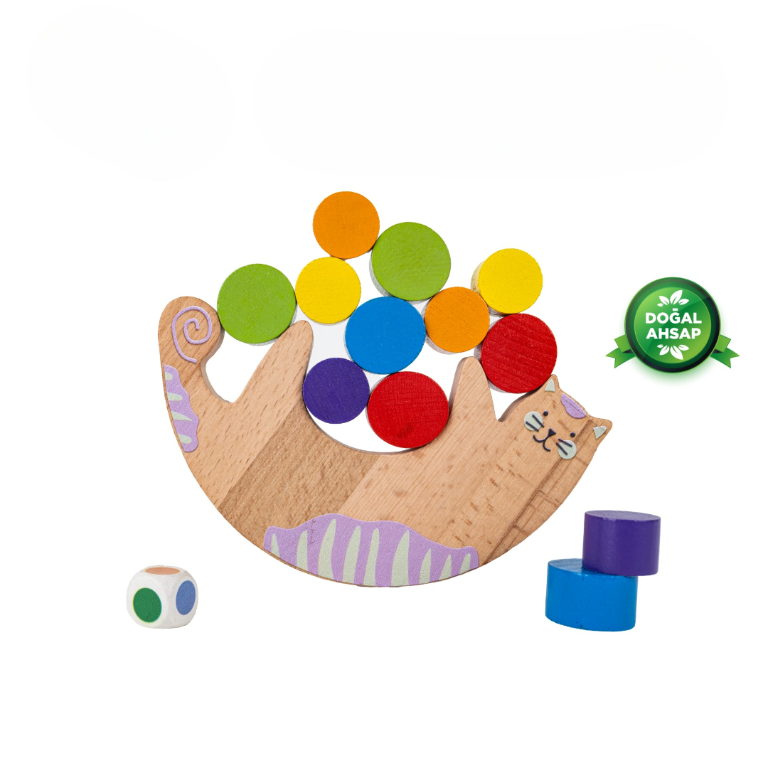 Oyun için ahşap kedi figürü, 12 silindir ve renk zarı