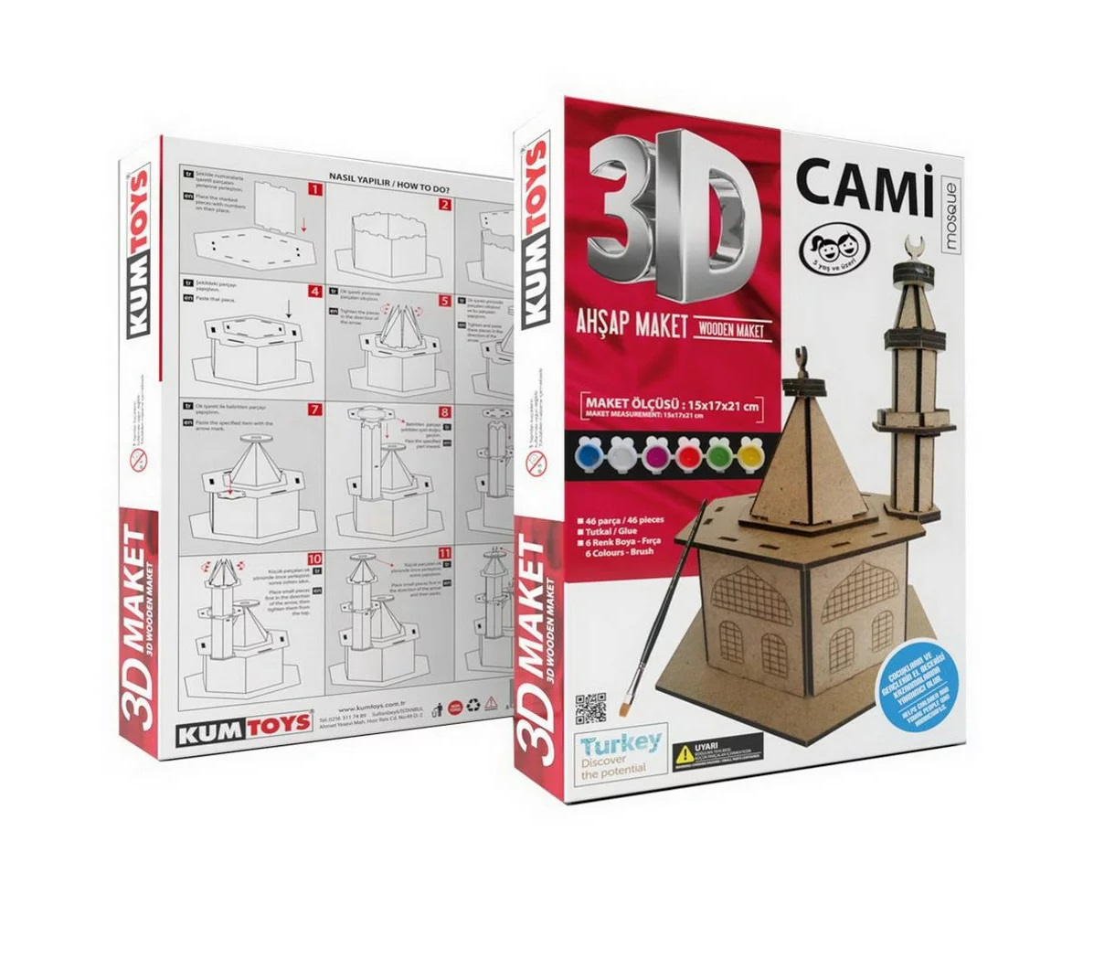 Ahşap cami maketi çocukların el becerilerinin arttırılması veya yetişkinlerin iyi vakit geçirmesi amacıyla tasarlanmış bir materyaldir.