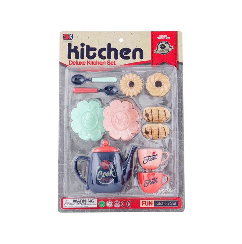 Kutu içerisinde; çeşitli kurabiyeler, alışveriş sepeti, çay ve servis seti yer almaktadır.