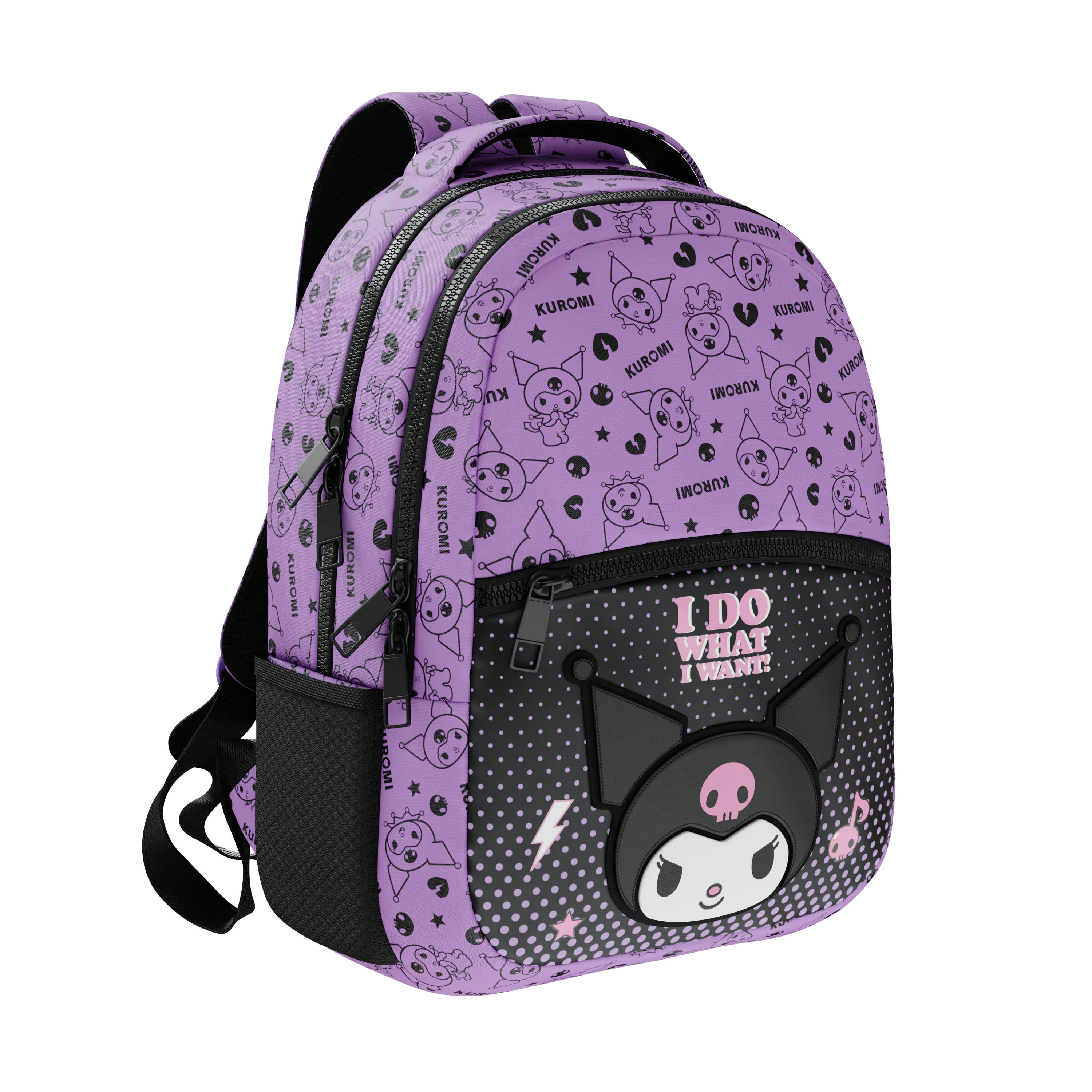 Siyah zemin üzerine sevimli Kuromi karakteri ve ikonik lila detaylarla süslenmiş bu model, hem tarz sahibi hem de fonksiyonel bir seçenek arayan aileler için idealdir.