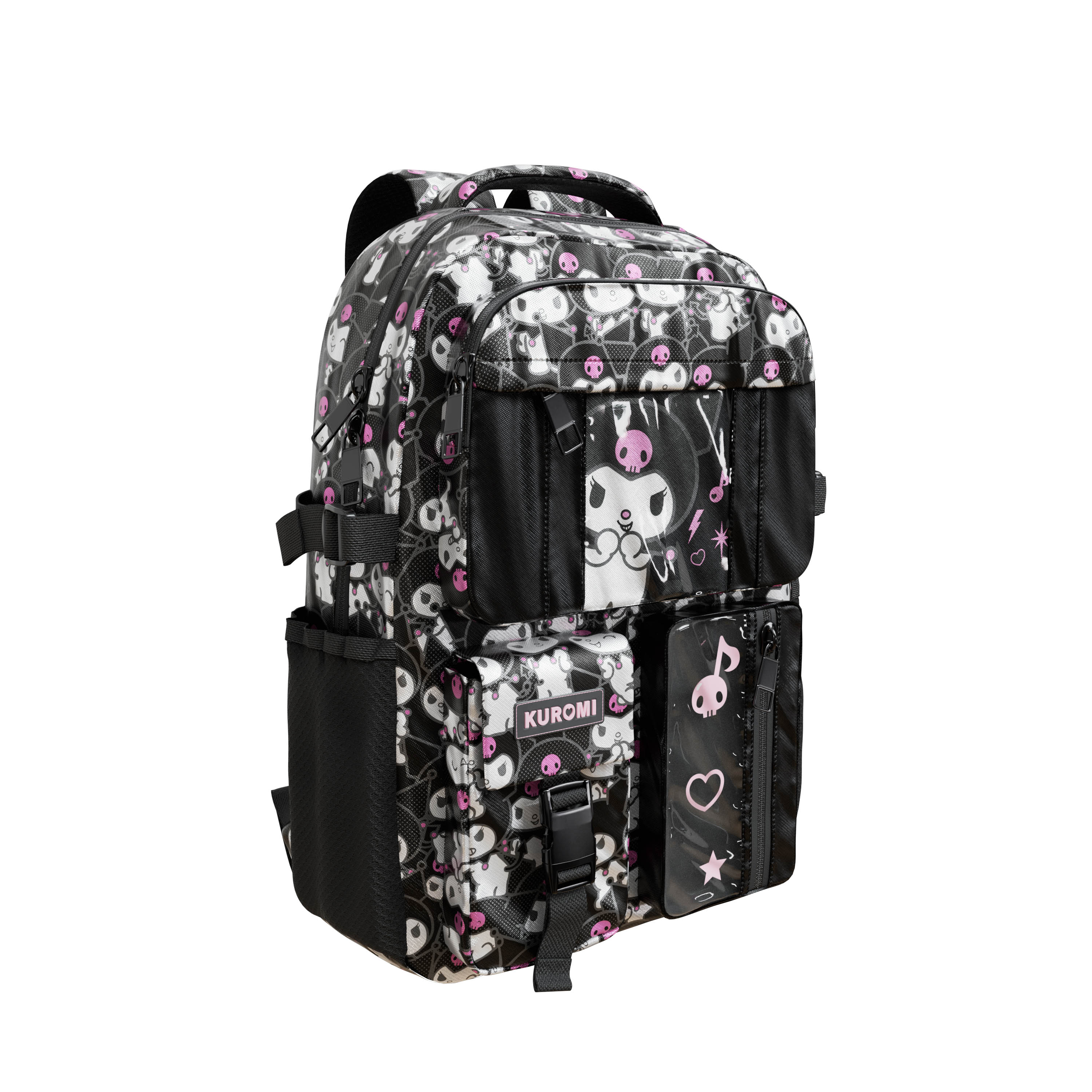 Siyah zemin üzerine sevimli Kuromi karakteri ve ikonik detaylarla süslenmiş bu model, hem tarz sahibi hem de fonksiyonel bir seçenek arayan aileler için idealdir.