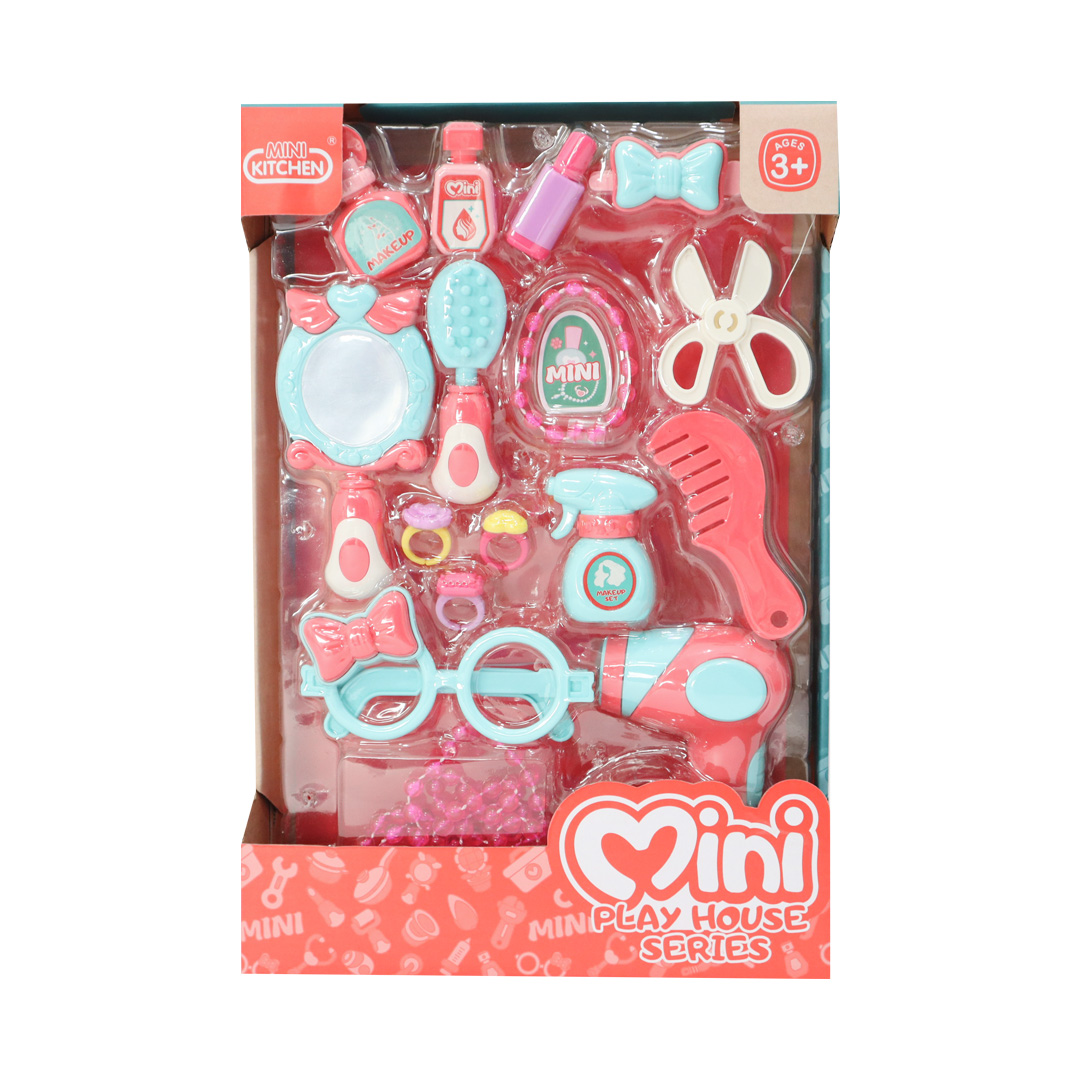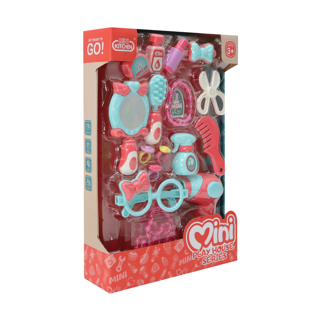 Set içeriği: Aynası, oje, saç cilası, ruj, kurdeleli saç tokası, fırça vs.