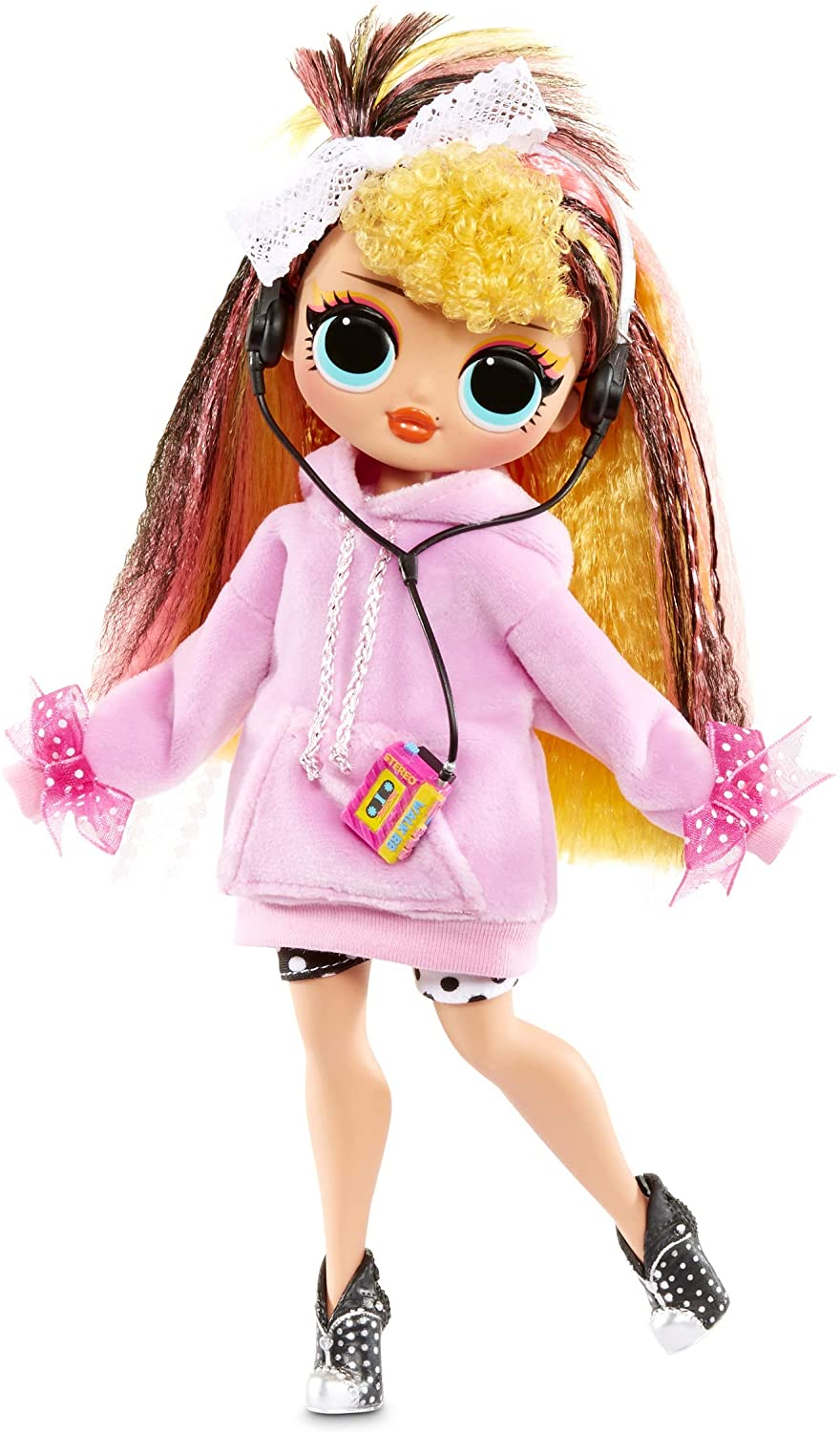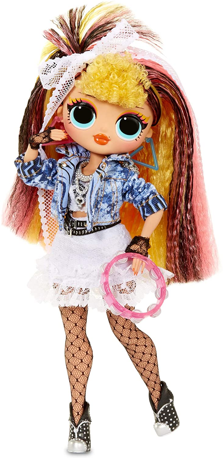 25 sürprizle gelen Remix OMG paketinde, 1 OMG Bebek, 2 farklı gösteri kıyafeti, ayakkabı, şapka kutusu, tarak, bebek standı, plak, şarkı