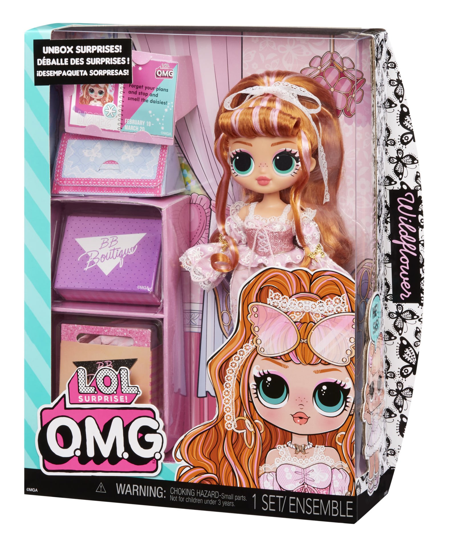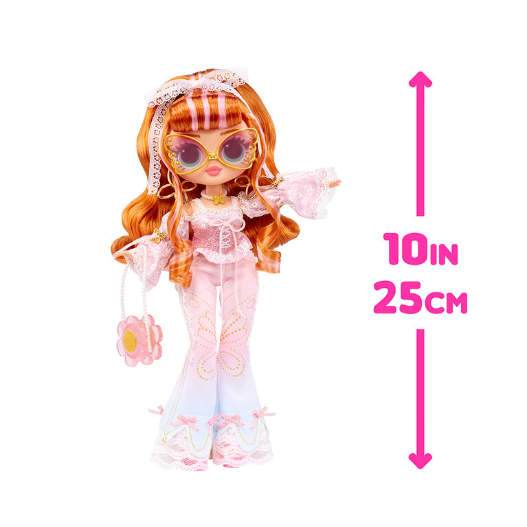 Çarpıcı yüz hatlarına, güzel saçlara, kendine özgü pastel tonlu çiçekli bir kıyafete sahiptir ve birçok poz verme fırsatı için eklemlidir. En son LOL Surprise OMG moda bebekleri, birbirlerini daha güçlü kılan arkadaşlar arasındaki farklılıkları kutlayan beklenmedik en iyi arkadaşlardır.