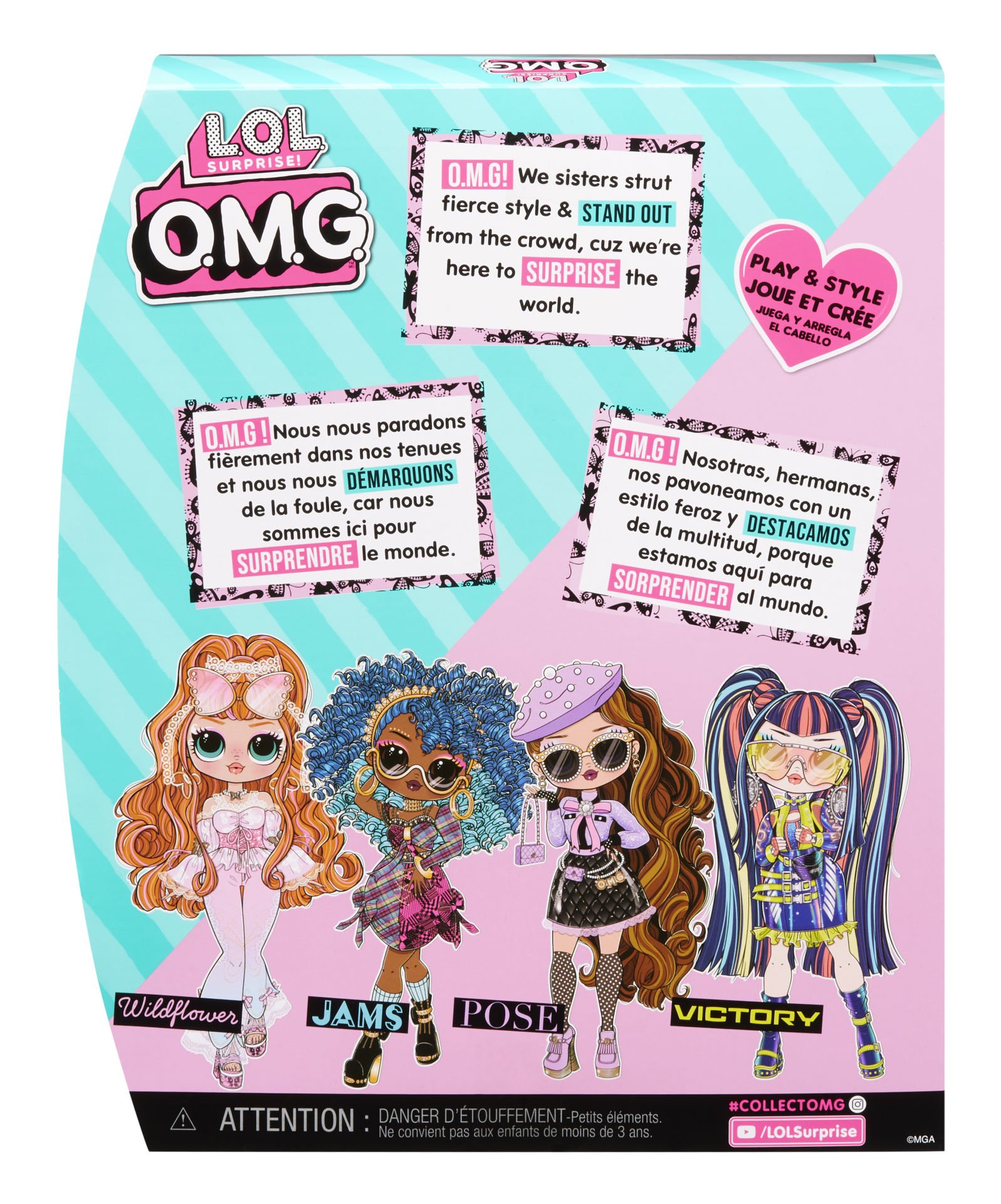 Farklı olsalar da, hepsi sevdikleri şeyi severler ve kiminle olursanız olun, hepsi sizin gerçek benliğiniz olmakla ilgilidir. Her kutu bir LOL Surprise OMG moda bebeği, muhteşem kıyafetler, ayakkabılar, aksesuarlar, gözlükler, bir çanta, bir saç fırçası ve bir bebek standı içerir. Tüm LOL Surprise OMG bebeklerini toplayın: Victory, Pose, Wildflower ve Jams!