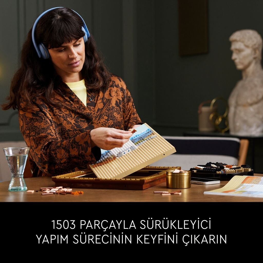 Art eserlerini sergilemek için kullanılabilir. Yetişkinler için bu LEGO seti,