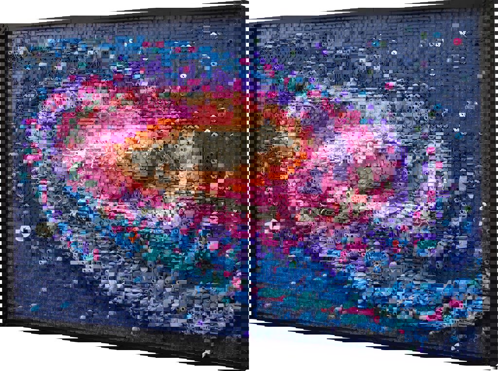 ve dokuda 3D efekti oluşturmak için kat kat dizilmiş 3091 LEGO yapım parçasından