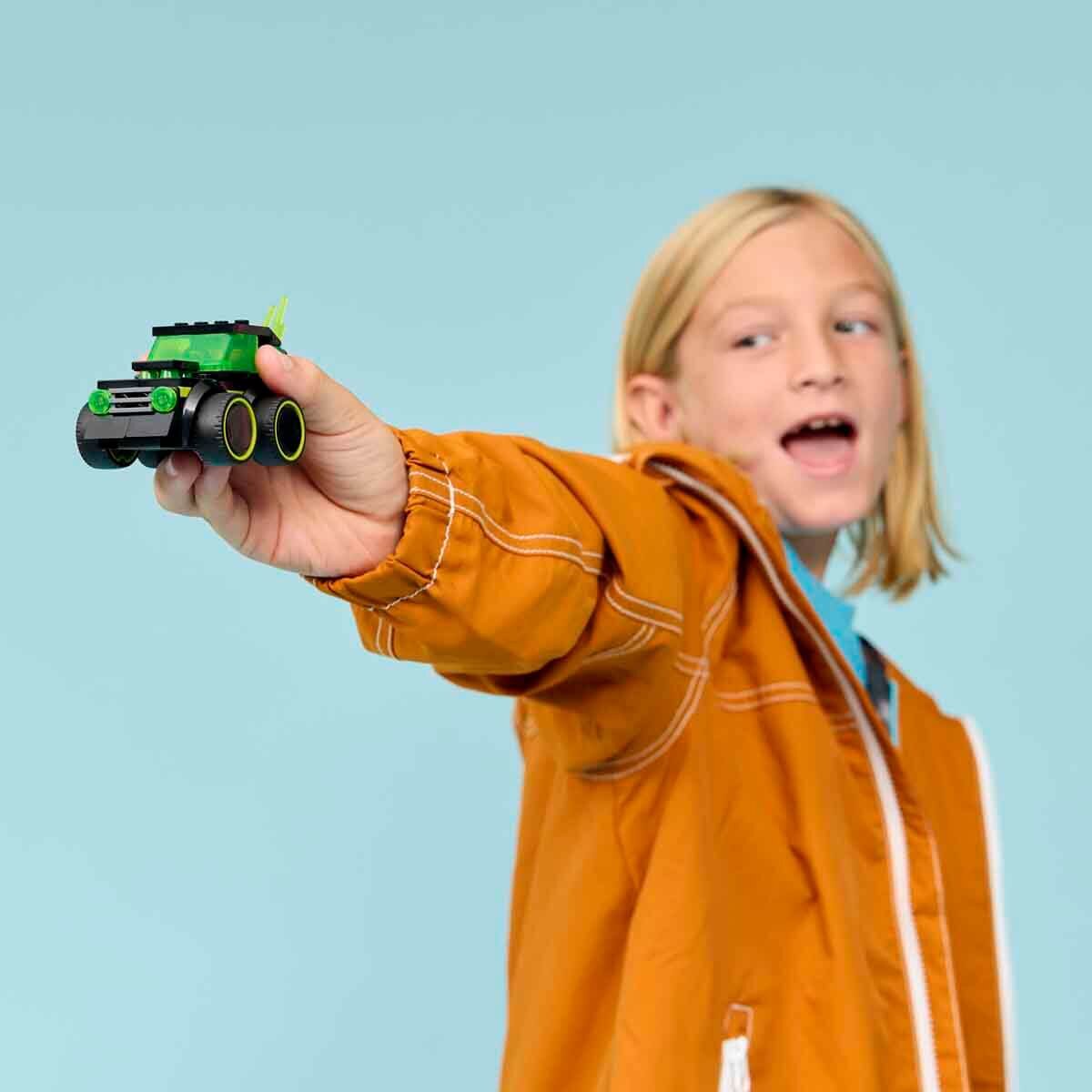 Hayal gücüyle oynamak için tasarlanan, inşa edilebilen minik boyutlu araba oyuncağı büyük lastikleri, sürücü kokpiti ve alevli egzoz borusuyla LEGO City'nin yaratıcı dünyasına harika bir giriş sağlar. Set, hızlı tempolu oyunlar için direksiyonun arkasına tam oturan LEGO City Araçlar küçük sürücü mini figürü içerir.