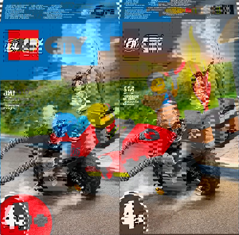 4 yaş ve üzeri çocuklar için LEGO® City İtfaiye Kurtarma Motosikleti yapım setiyle eğlenceli hikayeler ve maceralarda küçük model severinize katılın.