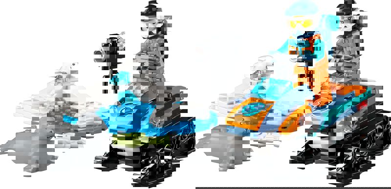 Kutup ortamı, kâşif mini figürü, ayrıca fok ve yavru fok figürleri içerir.