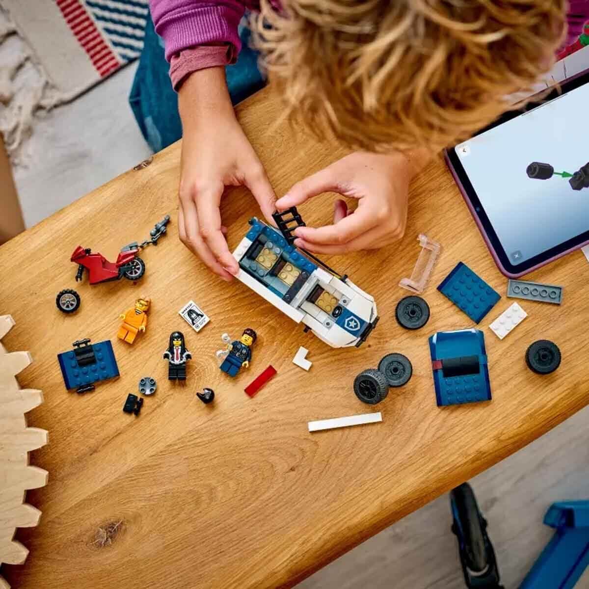 Yaratıcı çocuklar ve LEGO City Polis oyun setlerinin hayranları için harika olan polis aracı yapım seti, doğum günlerinde veya herhangi bir günde harika bir hediyedir. Daha fazla aksiyon ve yaratıcı hikayeler için bu seti diğer LEGO City acil durum araç oyuncaklarına (ayrı satılır) ekleyin. Çocuklar, LEGO Builder uygulamasını kullanarak öz güvenle model inşa ederken kolay anlaşılır dijital talimatlarla modeli yakınlaştırıp 3 boyutlu olarak döndürebilir ve ilerlemelerini takip edebilir. Sette 198 parça bulunur.