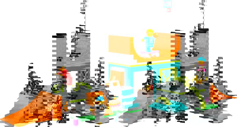 Yaratıcı oyunlar için ilhamla doludur ve farklı park konfigürasyonları için birleştirilebilen rampalara sahiptir. Bu sette ayrıca oyuncak bir BMX bisiklet, kaykay, scooter, paten, 4 kaykaycı minifigürü ve LEGO City serisinden diğer setlerle birleştirmek için LEGO Yol Zemini bulunur.