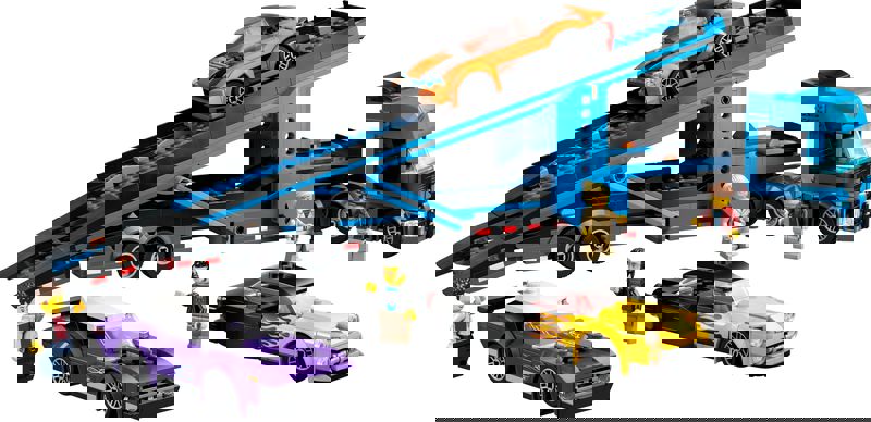 Arabalı Araç Taşıma Kamyonu (60408) yapım setini oyuncak araba tutkunlarına