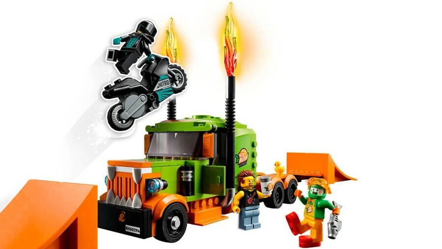 • Volanlı bir gösteri motosikleti ve muhteşem gösteriler yapmak için eğlenceli ekipmanlar içeren bu birinci sınıf LEGO City Gösteri Kamyonu (60294) oyun setiyle